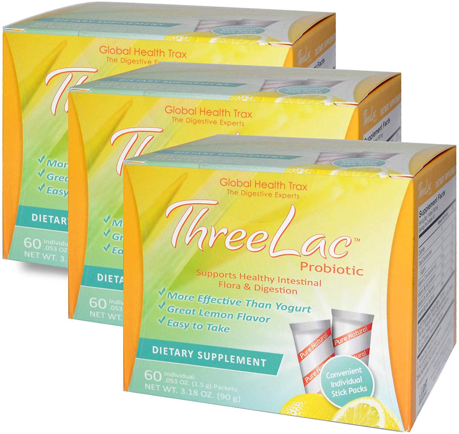 Global Health Trax ThreeLac Probiotic, Lemon Flavor Dietary Supplement (3 Pack) 60 Packets Supports intestinal and Digestive Health