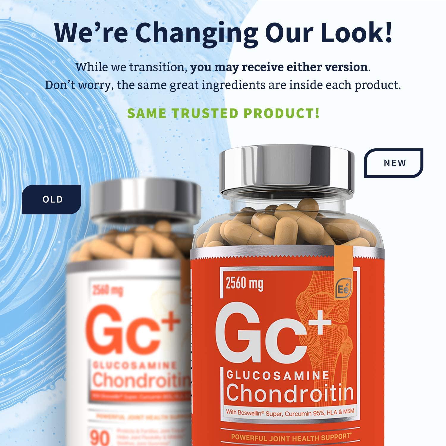 Essential elements Glucosamine Chondroitin is a premier way of finding natural joint discomfort relief and is perfect for men, women, and seniors. Glucosamine is needed by your body to form the cartilage that keeps joints moving smoothly and with reduced soreness. Chondroitin bolsters these effects, effectively creating a shock absorber for weary joints. As part of our synergistic formula, hyaluronic acid, 95% curcumin, Boswellin Super, and methylsulfonylmethane (MSM) are included to optimize joint flexibility. Whether discomfort and stiffness is a result of aging, weight, or athletic activity, Gc+ is what joints need.