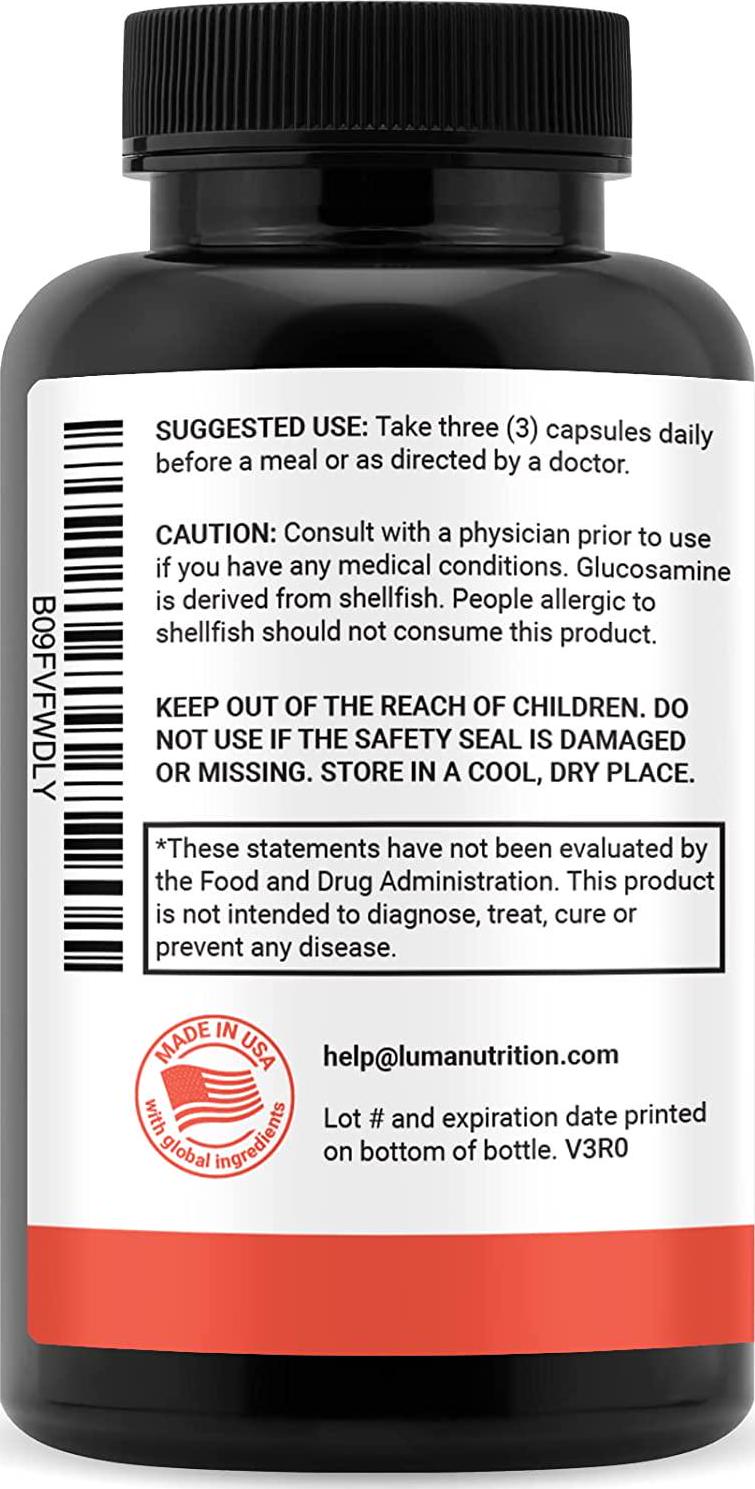Luma Nutrition's joint support supplement contains a powerful blend of Glucosamine, Chrondroitin and Msm. Clinical studies show that these ingredients may help to reduce aches, pains, soreness and inflammation in the joints. Ingredients: Glucosamine Chondroitin Sulfate Msm (Methylsulfonylmethane) Hyaluronic Acid Turmeric Boswellia Use our joint supplement to help maintain healthy and strong cartilage. It can help reduce joint-related aches, pains and discomfort, as well as support collagen health. Some may experience a greater range of motion as a result of our product helping to cushion and lubricate your joints. Many of the ingredients are considered an anti-inflammatory and can help with joint pain relief. Common names: There are many different ways people try and spell or pronounce Glucosamine and Chondroitin; Here are some common mis-spellings: glicosamina glucosamina glucosimine chondriton condroitan guclosamine glocosamin gucosamine glucoamine cosamine glucousimine glocosamina glucosamin gloucosamin glucosomine chondroitina condroitin condroitina chrondroitin condrotin chodroitin chondrotine chondroition condroiten chondoitin chondroitan condroiton chondritin chondroiton