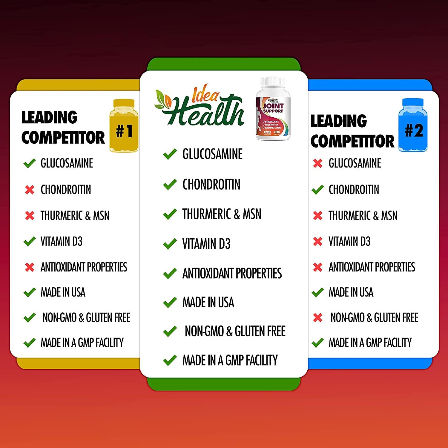 Glucosamine, Chondroitin, Turmeric, MSM, Boswellia, Quercetin, Methionine and Bromelain are compounds that promote greater joint health and range of motion and comfort;* Natural & non-GMO: Gluten free, no sugar, no cholesterol, no artificial colors, no binders.