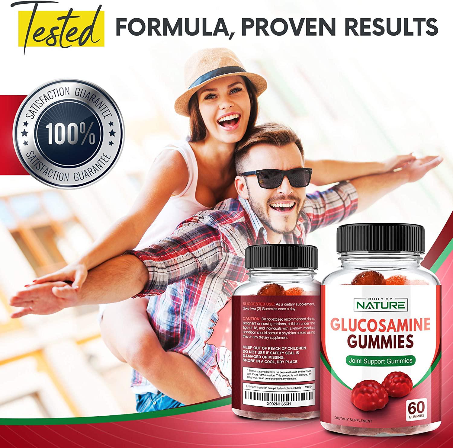Glucosamine Gummies Extra Strength Chewable Joint Support Supplement for Adults, 60 Gummies (30 Day Supply) GLUCOSAMINE GUMMIES: Our extra strength gummies are loaded with Glucosamine and Vitamin E for joint support. TASTY RASPBERRY FLAVOR: These gummies are pectin based, resulting in better texture and taste. These yummy gummies are convenient and delicious to eat. JOINT SUPPORT GUMMIES: Our Glucosamine Gummies supports joint health. Aiding as a natural joint support supplement. EXTRA STRENGTH: Our joint support gummies contain Glucosamine and Vitamin E to give your joints extra strength support. TRUSTED FORMULA: Our Glucosamine Gummies are formulated by professionals and manufactured following strict GMP guidelines. Our Glucosamine Gummies are third party tested to assure the quality and purity of each batch.