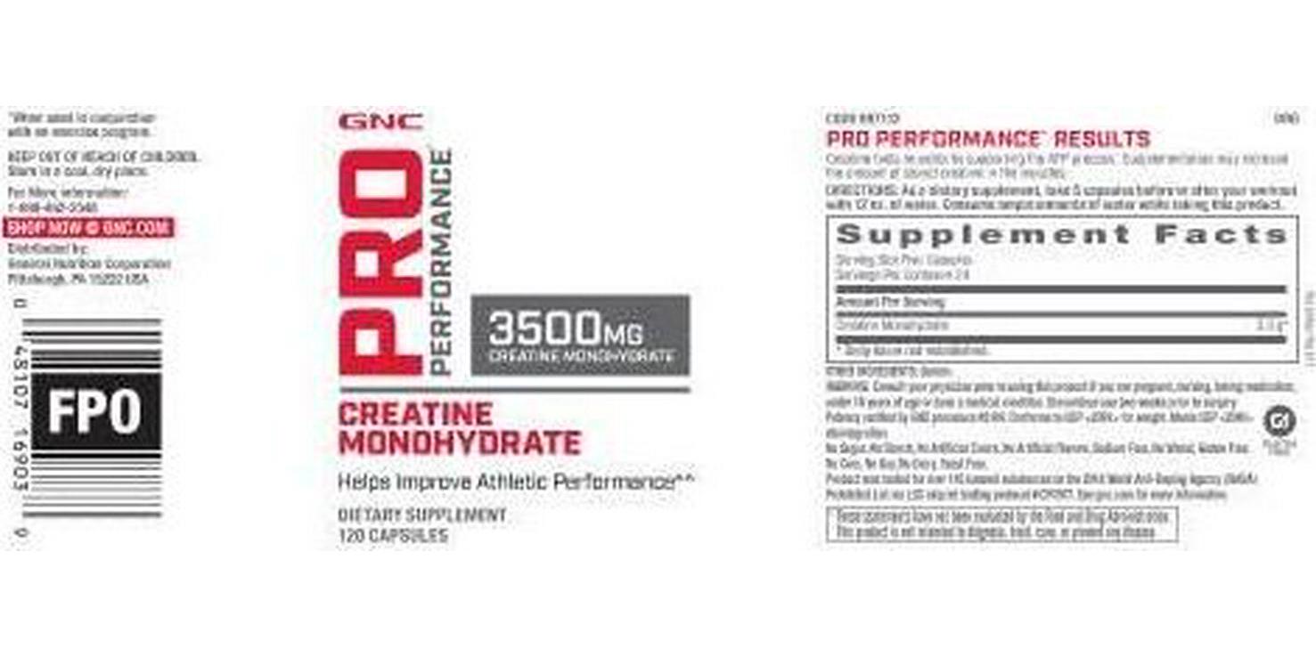 120 capsules, 3500mg, athletic performance, gnc pro performance creatine monohydrate, usa