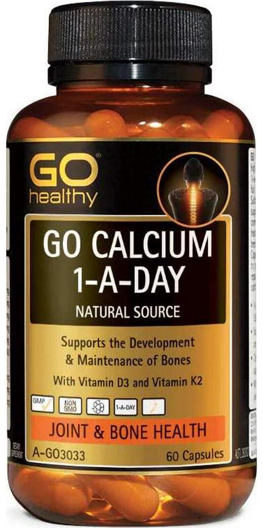 GO CALCIUM 1-A-DAY NATURAL SOURCE is a source of Calcium. Adequate dietary Calcium in our youth and throughout life is required to maximise bone mineral density. Each capsule contains 500mg elemental Calcium with the addition of Vitamin D to support the development and maintenance of strong, healthy bones. Vitamin K is necessary for the action of osteocalcin, which is found in bones and regulates the function of Calcium in bone turnover and mineralisation.