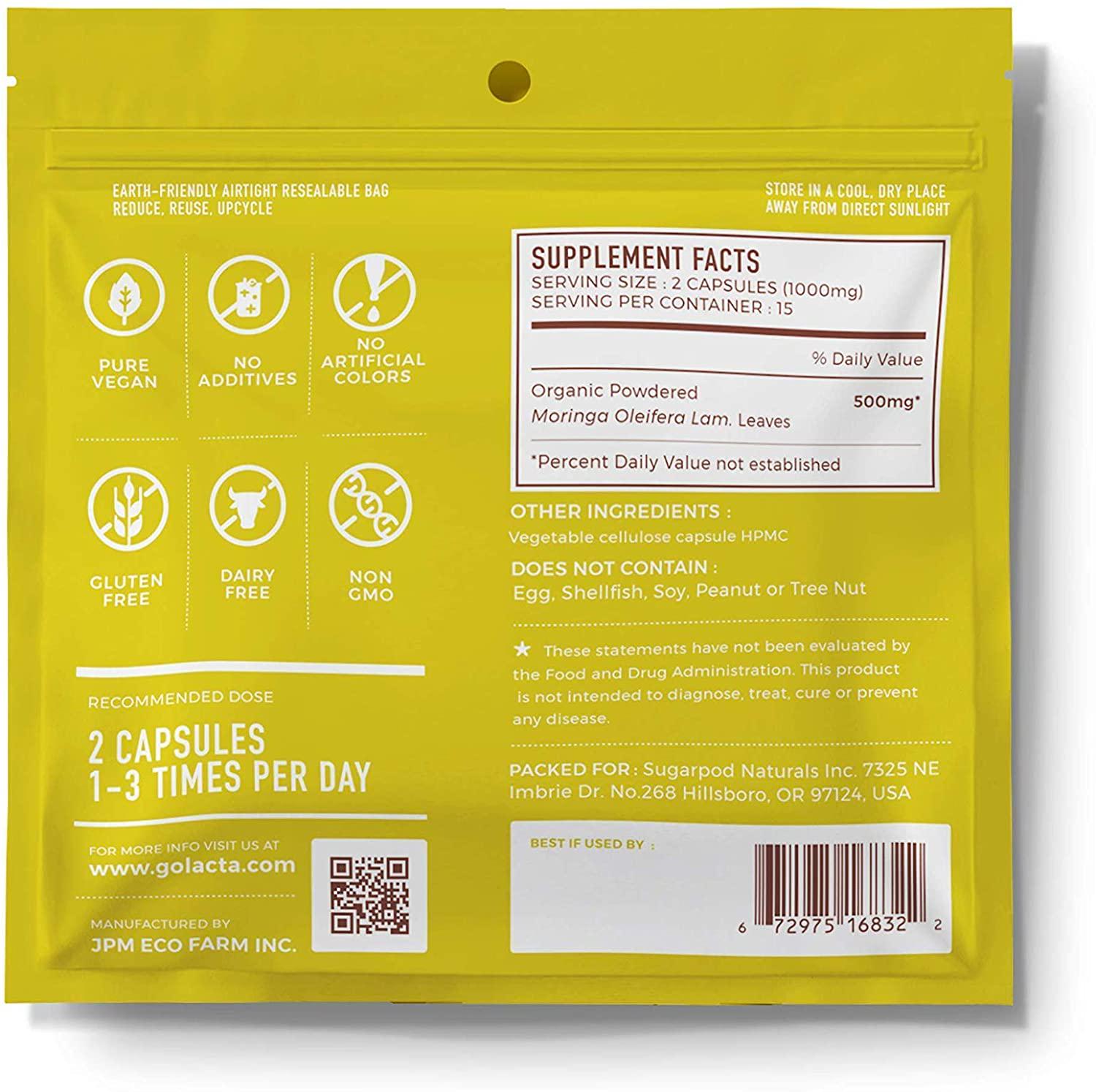 Go Lacta 100% Organic Moringa Capsules for Breastfeeding Moms, 30 Capsules