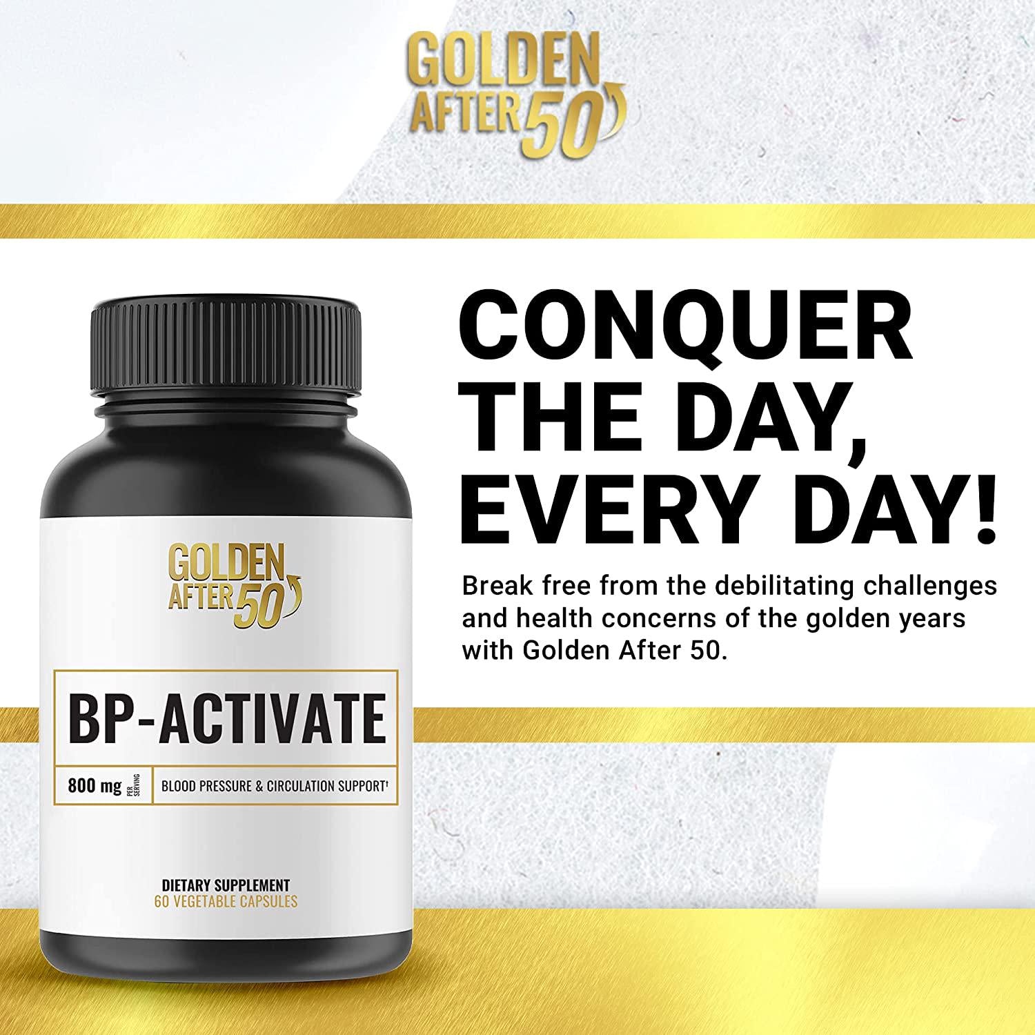 Helping People in Their Golden Years Overcome Every Day Golden After 50 was created with one thought in mind: to help men and women during their golden years continue living life on their own terms and without having to depend on others. BP-Activate for Amazing Blood and Heart Health Our nitric oxide levels drastically decrease with each passing birthday. Lesser nitric oxide could mean constricted blood vessels, restricted blood flow, an overworked heart, and raised blood pressure. BP-Activate is our unique, proprietary formula with 3 natural compounds, each shown to help the body produce nitric oxide for controlled blood pressure. Each potent ingredient goes to work to help you from all angles to improve blood circulation. Helps You Feel Good From Head to Toe, Naturally Smile and Feel Better Every Day Eager to have pristine blood pressure monitor readings and warmer extremities day after day With BP-Activate's natural active ingredients, they help keep the numbers in check so you can conquer the day, every day! Enjoy the Benefits Now As a dietary supplement, you can take 2 capsules once a day. Take 20-30 minutes before a meal with 6-8oz water or as directed by your healthcare professional. No More Holding Back We created our products using only nature's finest to reduce everyday problems that might force you to change your lifestyle and hold you back.