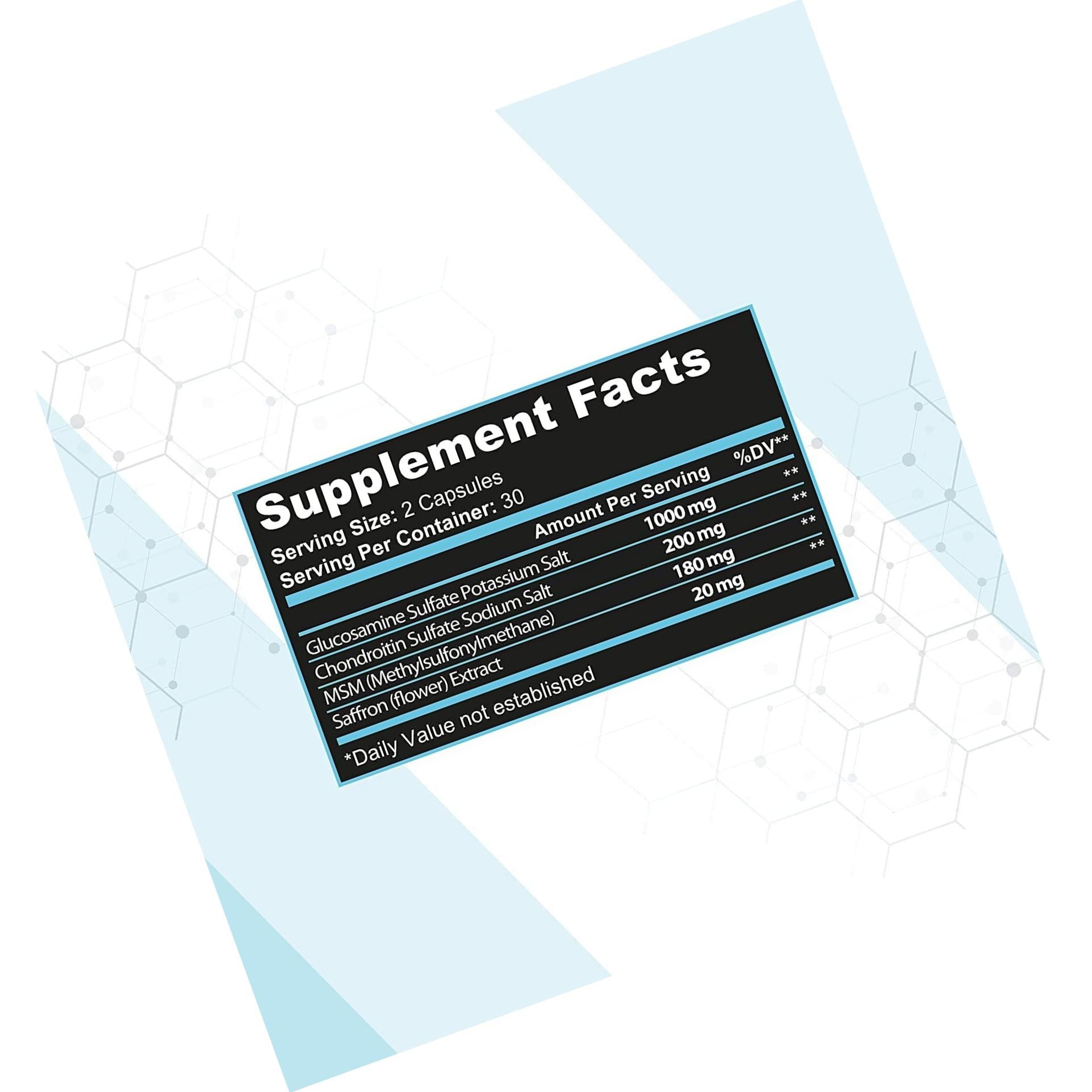 Golden Saffron Glucosamine provides an advanced formula (the combination of glucosamine, chondroitin, MSM, and saffron extract) to improve joint health, modulate metabolism and boost energy. By adding 20 mg of saffron extract to the conventional formula of joint support supplements, Golden Saffron glucosamine is the optimum choice for everyone. The saffron extract, which contains a variety of powerful antioxidants, has anti-inflammatory effects and antidepressant properties. It also can play a vital role in regulating metabolism. Moreover, Glucosamine, chondroitin, and MSM can generally improve functional ability and reduce arthritis symptoms such as cartilage loss, joint pain, inflammation, and swelling. With a unique formula and an optimal dosage, Golden Saffron Glucosamine can be the best choice for those seeking a healthy lifestyle.