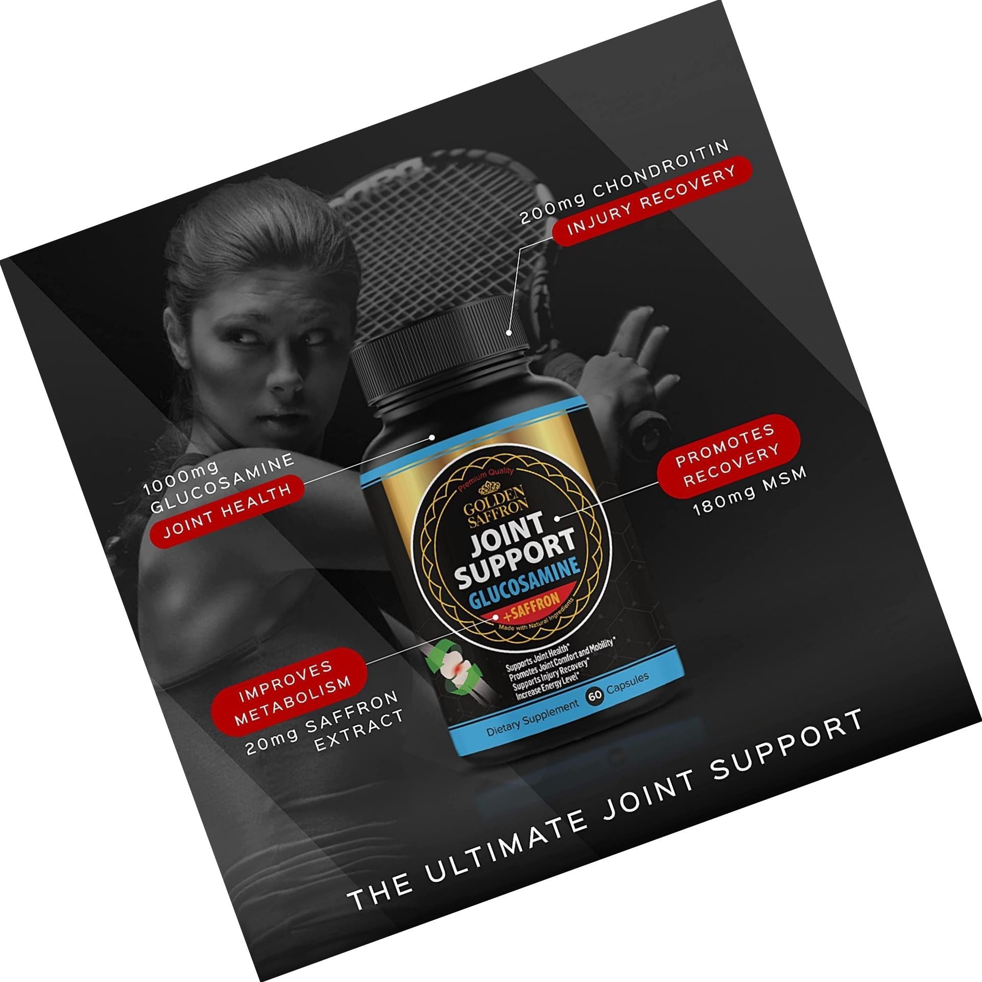 Golden Saffron Glucosamine Chondroitin Msm Plus Saffron Extract Capsules with Unique Formula, Joint Support, Improves Mobility, Regulates Metabolism, Increases Energy, Non-GMO, Gluten-Free, Soy Free