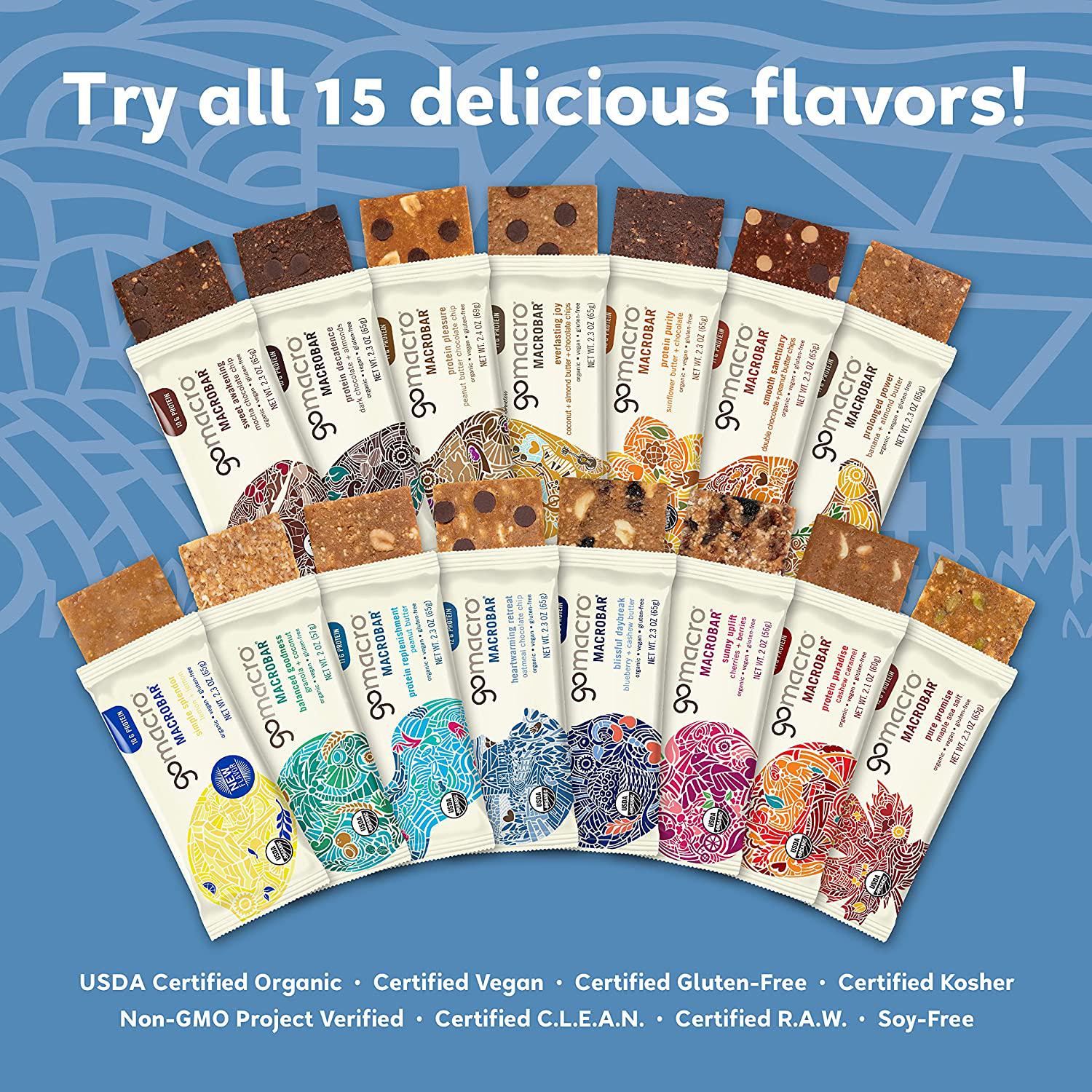 - CERTIFICATIONS YOU CAN TRUST: All GoMacro protein bars are Certified Organic, Vegan, Gluten-Free, Kosher, Non-GMO, C.L.E.A.N., and Soy-Free so you can snack with confidence. If there were a certification for delicious, we d have that too!