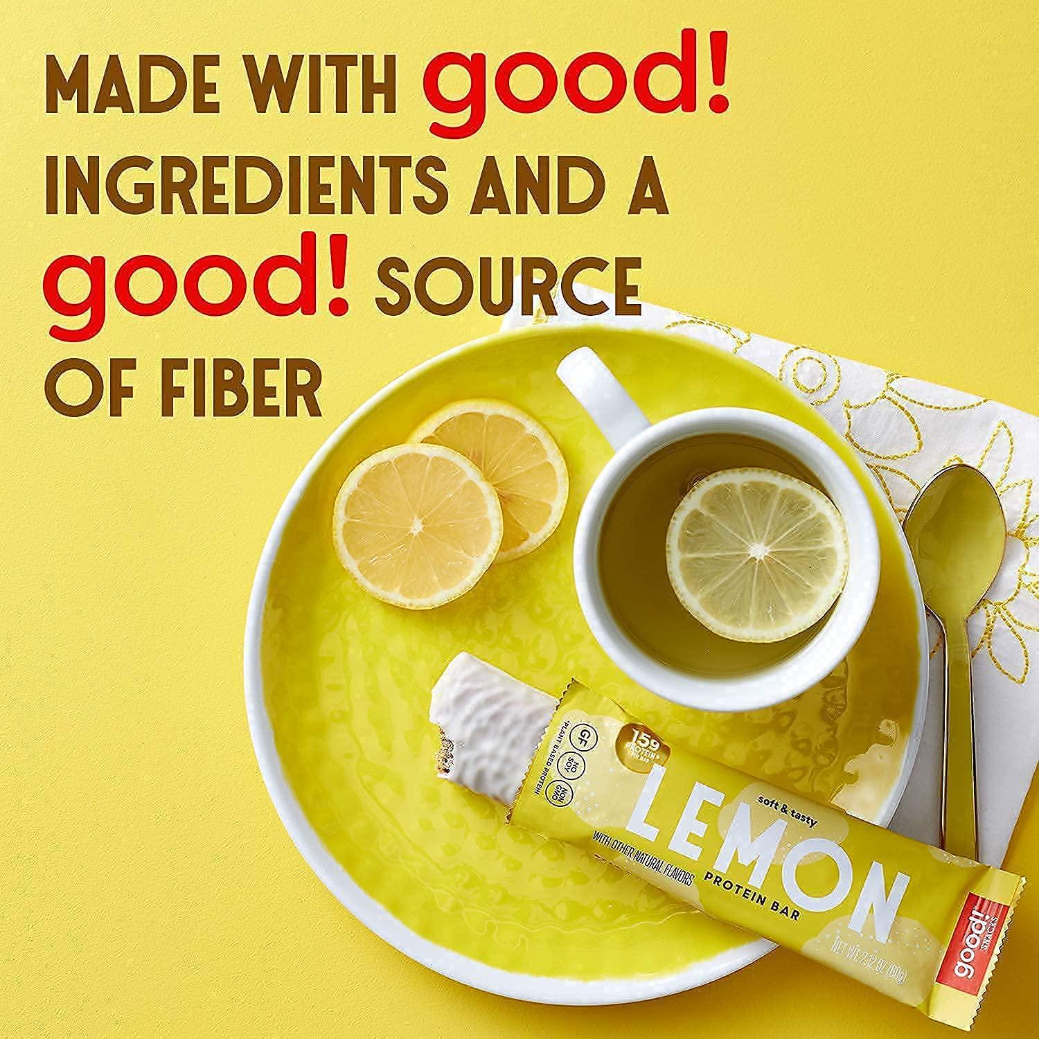 good! Snacks Vegan Protein Bars Bundle, Lemon and Blueberry (24 Bars) Gluten-Free, Plant Based, Low Sugar, High Protein Meal Replacement, Healthy Snacks for Energy, 15g Protein