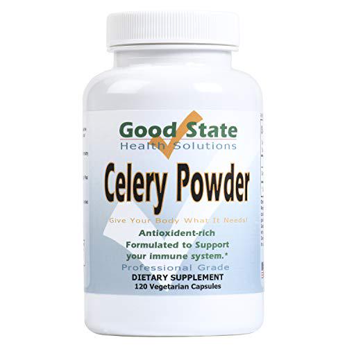 Good State's celery powder is a great way to restore digestive function and gut health. It is rich in vitamins and minerals and packed with Phytonutrients. Phytonutrients are antioxidant and anti-inflammatory and provide significant health benefits. Our encapsulated celery powder is easy-to-take and perfect for people on the go! Each capsule contains 500mg of celery powder, 120 capsules per bottle. Celery is a great source of important antioxidants Celery reduces inflammation. and supports digestion Celery is rich in vitamins and minerals with a low glycemic index Celery has an alkalizing effect Remember, for a Good State of Health.. Give Your Body What It Needs!