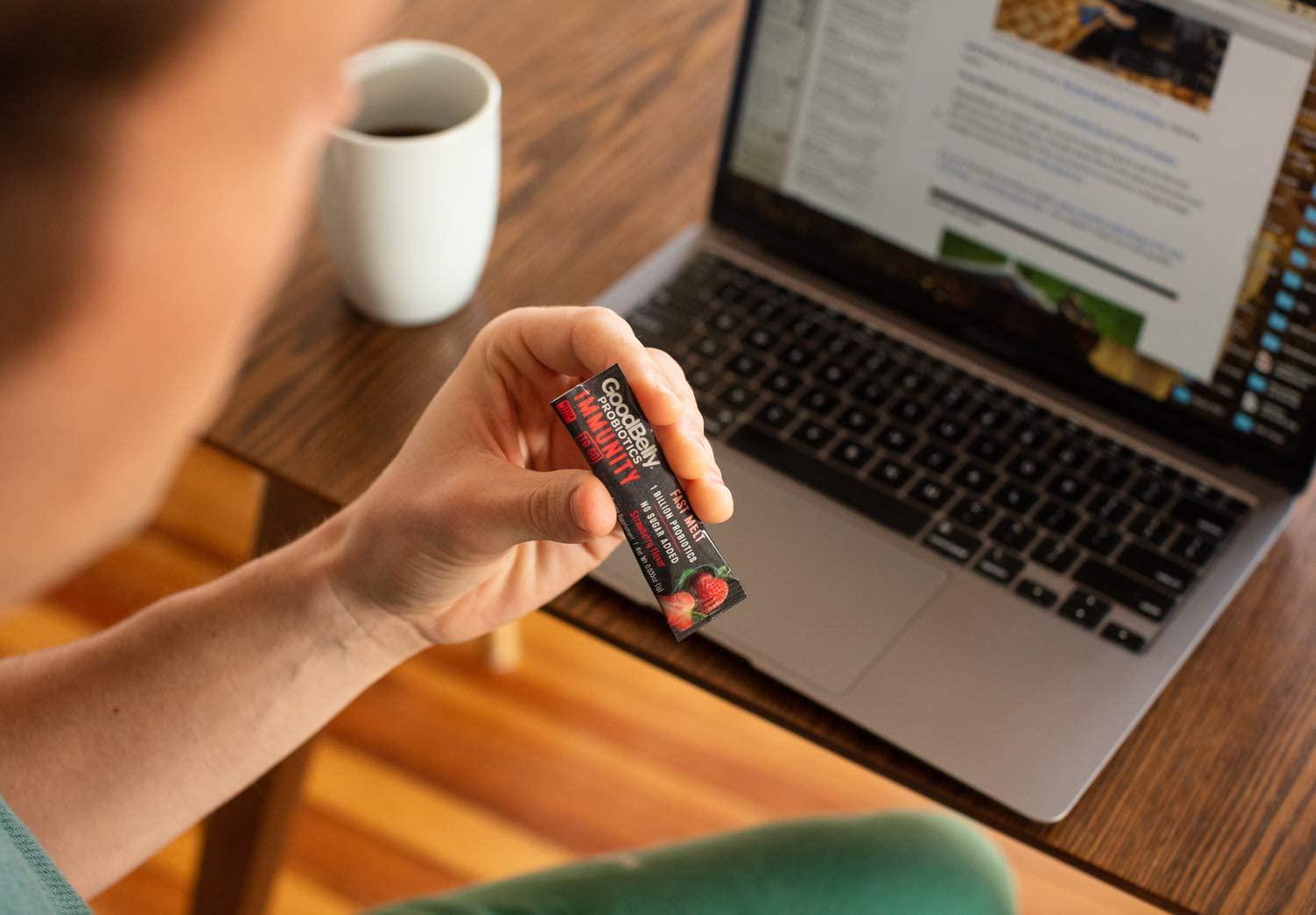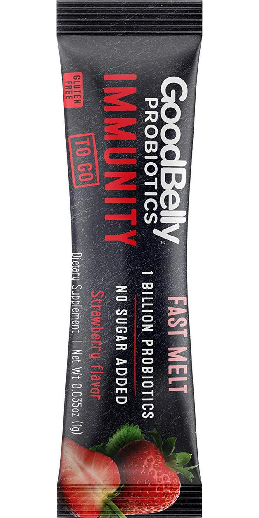 goodbelly fast melts, immunity support, live cultures, on-the-go packets, probiotic, strawberry flavor