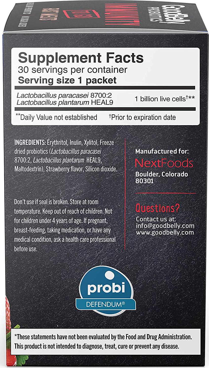 Did you know that 70% of your immune system lives in your gut? Supporting your gut health has never been more important. Were thrilled to introduce GoodBelly Immunity Fast Melts Probiotics! These powerhouses contain a blend of probiotics (Lactobacillus plantarum HEAL9 and Lactobacillus paracasei DSM 13434) that has shown strong immune enhancing effects in multiple clinical studies. GoodBelly Strawberry Immunity Fast Melts have also been shown to support key immune cells in the body, to help keep you (and your belly) feeling your best. This delicious and light strawberry powder has a crisp fruity taste that instantly dissolves in your mouth or into a small glass of water! GoodBelly Probiotic Fast Melts are the perfect companion for your on-the-go healthy lifestyle. Toss it in your purse or backpack to make sure you are supporting your immune system wherever you go! NextFoods, the makers of GoodBelly, based in Boulder, Colorado, is on a mission to help everyone understand that good digestive health is connected to your overall health and wellbeing. Everything we do is guided by the belief that the journey to better health starts with your belly. Try out GoodBelly Probiotics and experience the difference yourself!