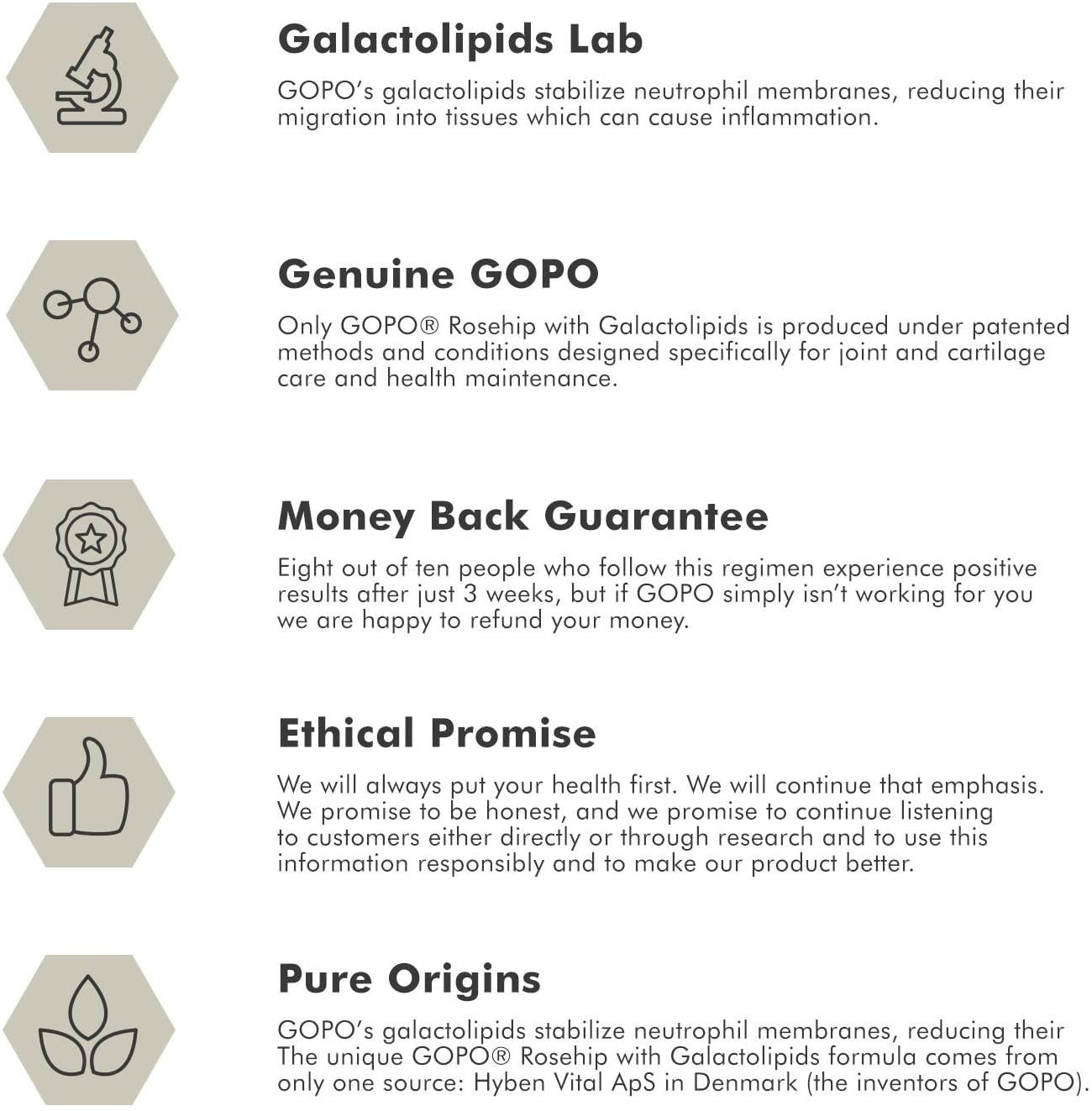 GOPO Joint Health is made from 100% specially cultivated natural rose-hip and is the only product of its kind to contain a high level of GOPO - a key component of the rose-hip which may play a valuable role in the care of joints and joint tissues.GOPO was discovered over 20 years ago in Denmark and significant levels can only be obtained if the rose-hips are dried using a special patented process. GOPO has been available in Denmark for over ten years and has been the subject of several scientific studies.How do I take it?