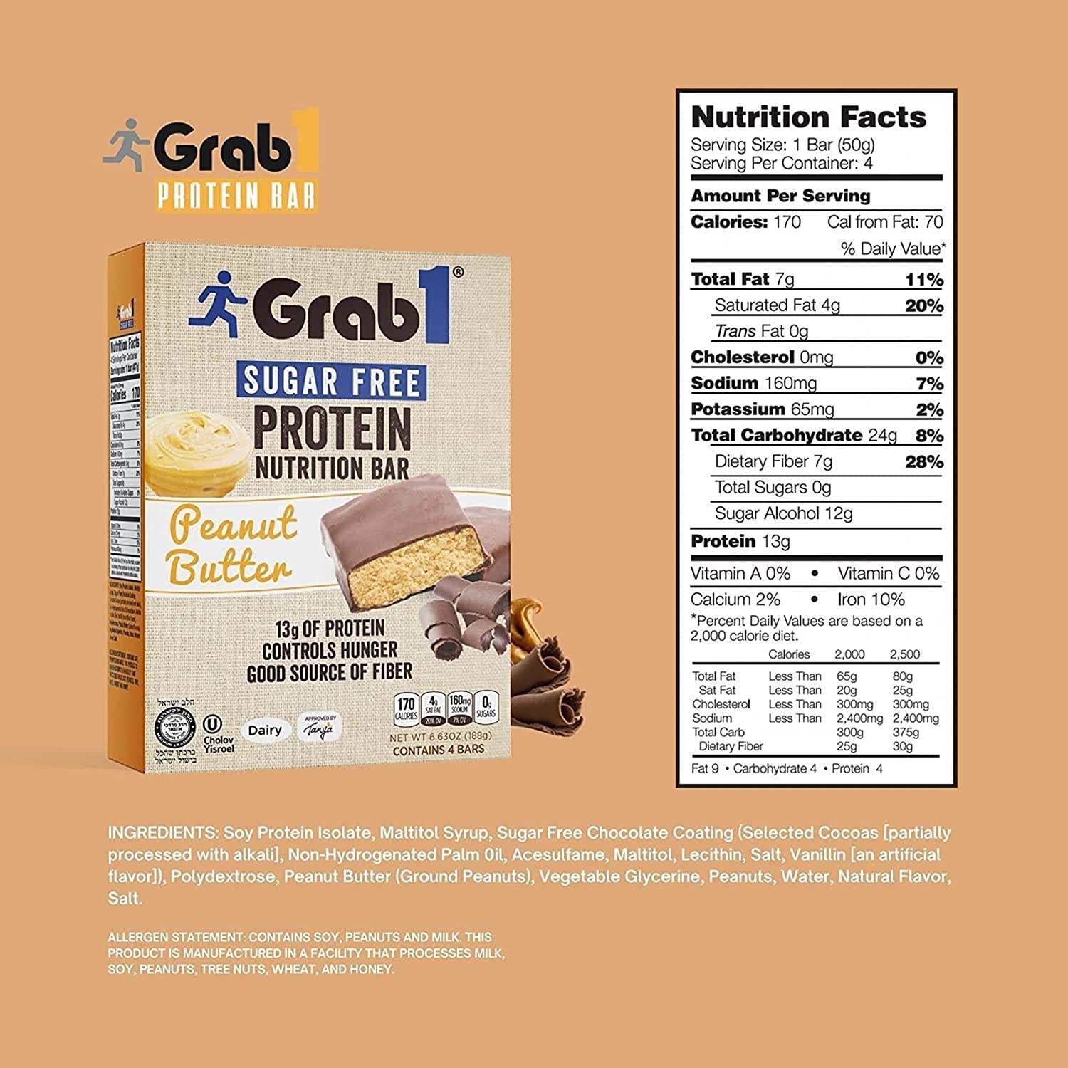 grab1 bars, kosher bars, low calorie bars, peanut butter bars, sugar free protein bars, usa
