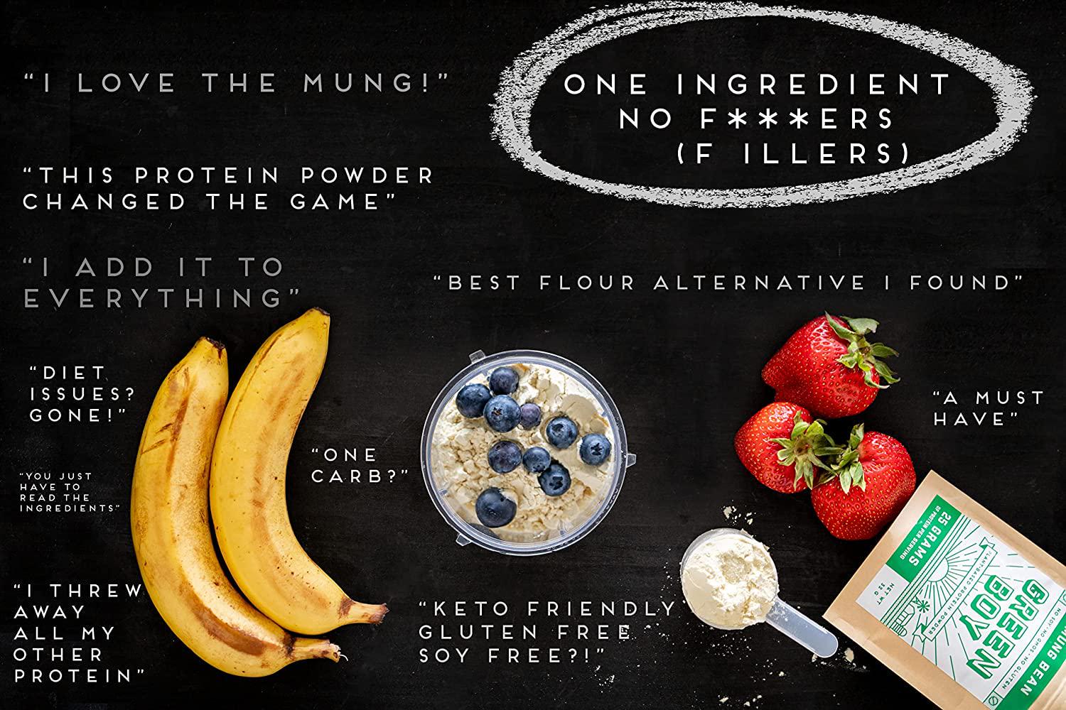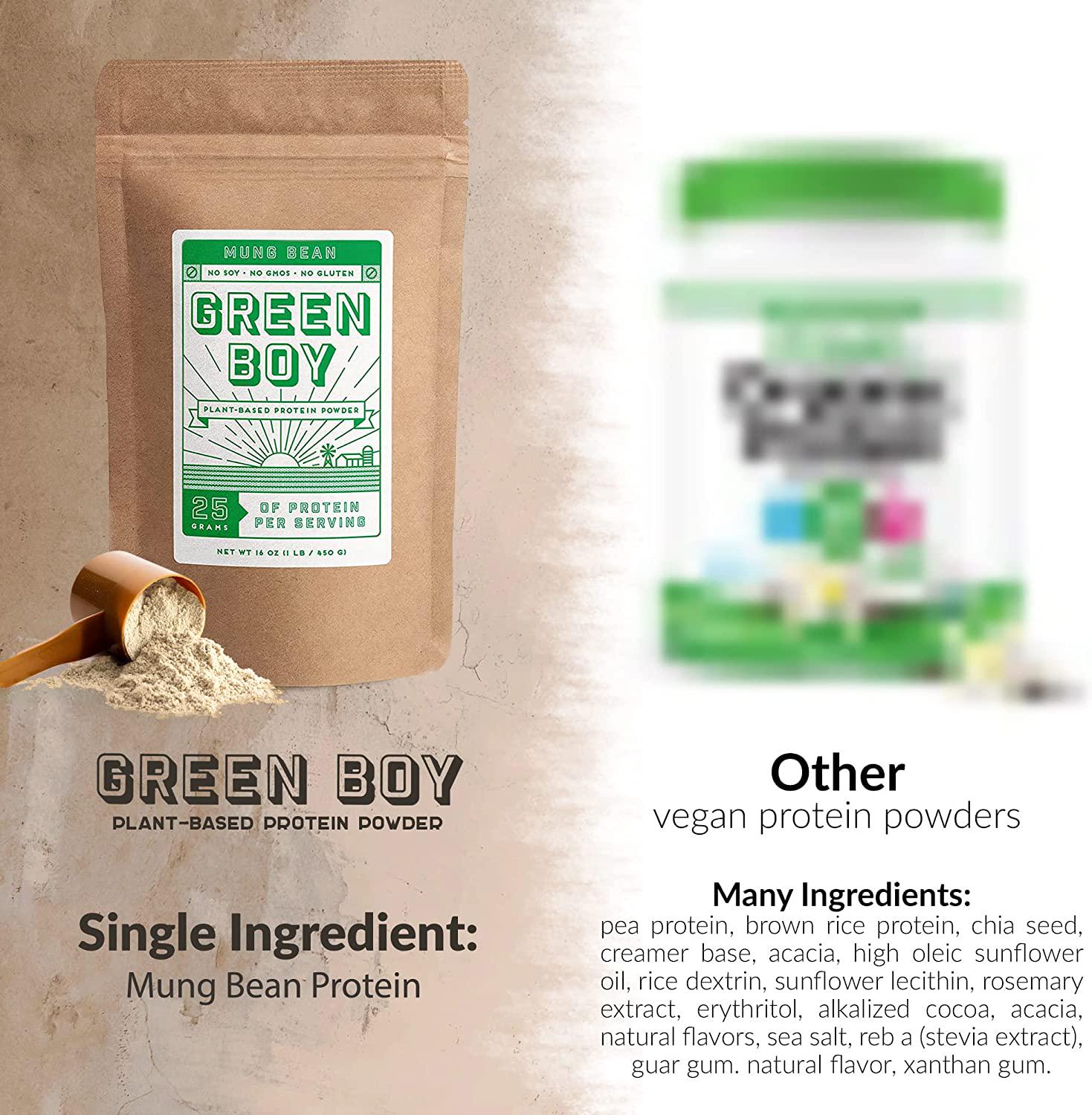 Green Boy Plant-based Mung Bean Protein Powder Made From Single Ingredient, Vegan and Clean Alternatives for Plant Protein, Good for Cooking, Baking and Smoothies, No Added Sugar, Soy or Gluten (16oz)