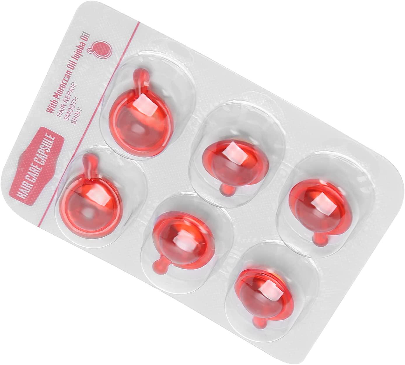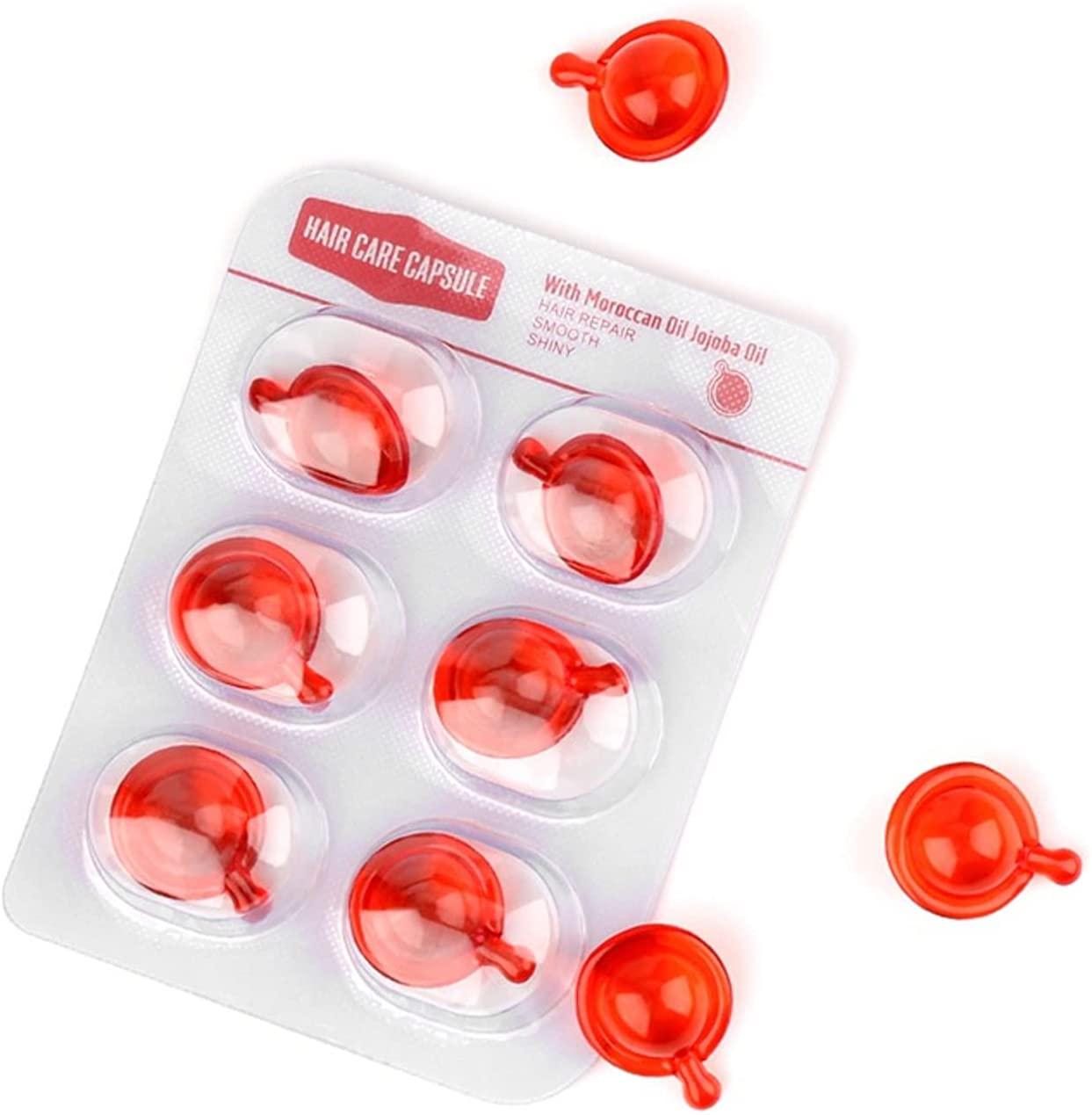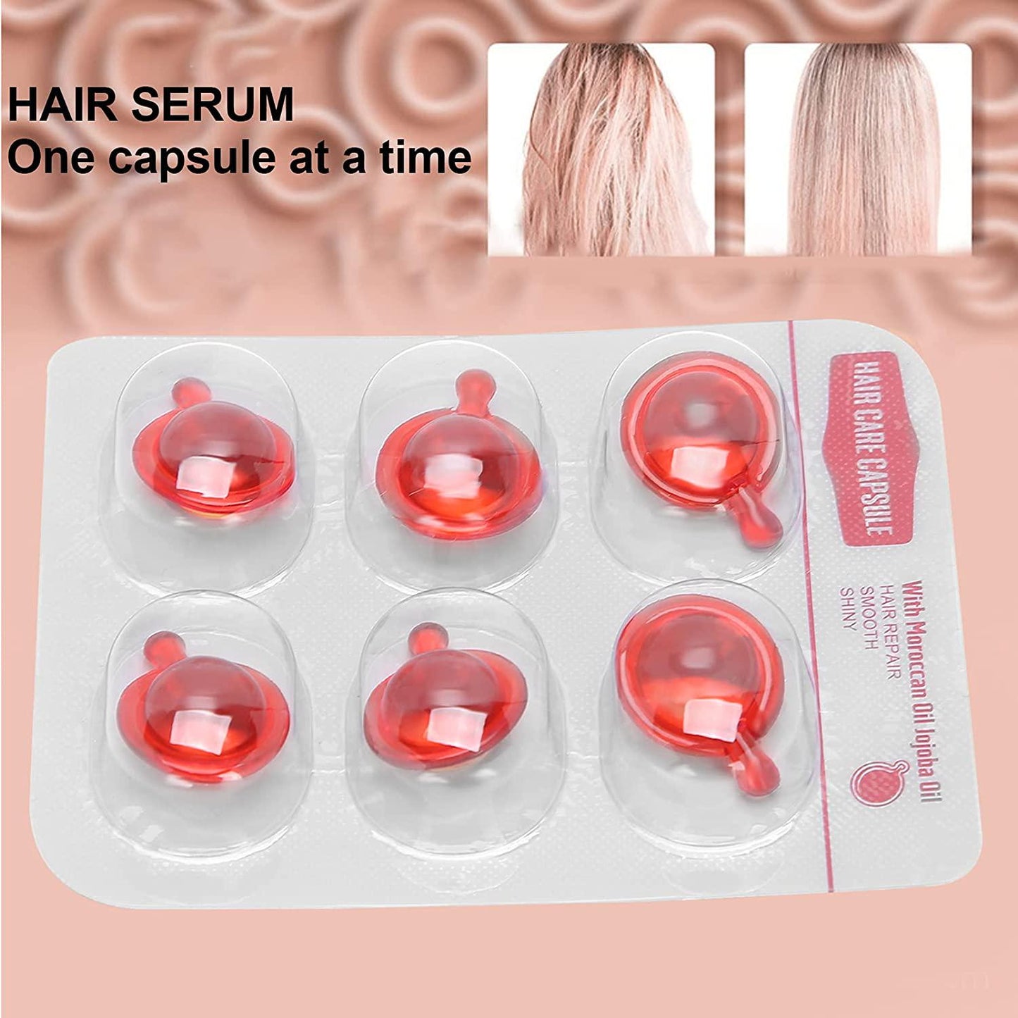 - The red capsule serum including Moroccan oil, jojoba oil, to nourish and repair brittle and rough hair, making the hair healthier and stronger.