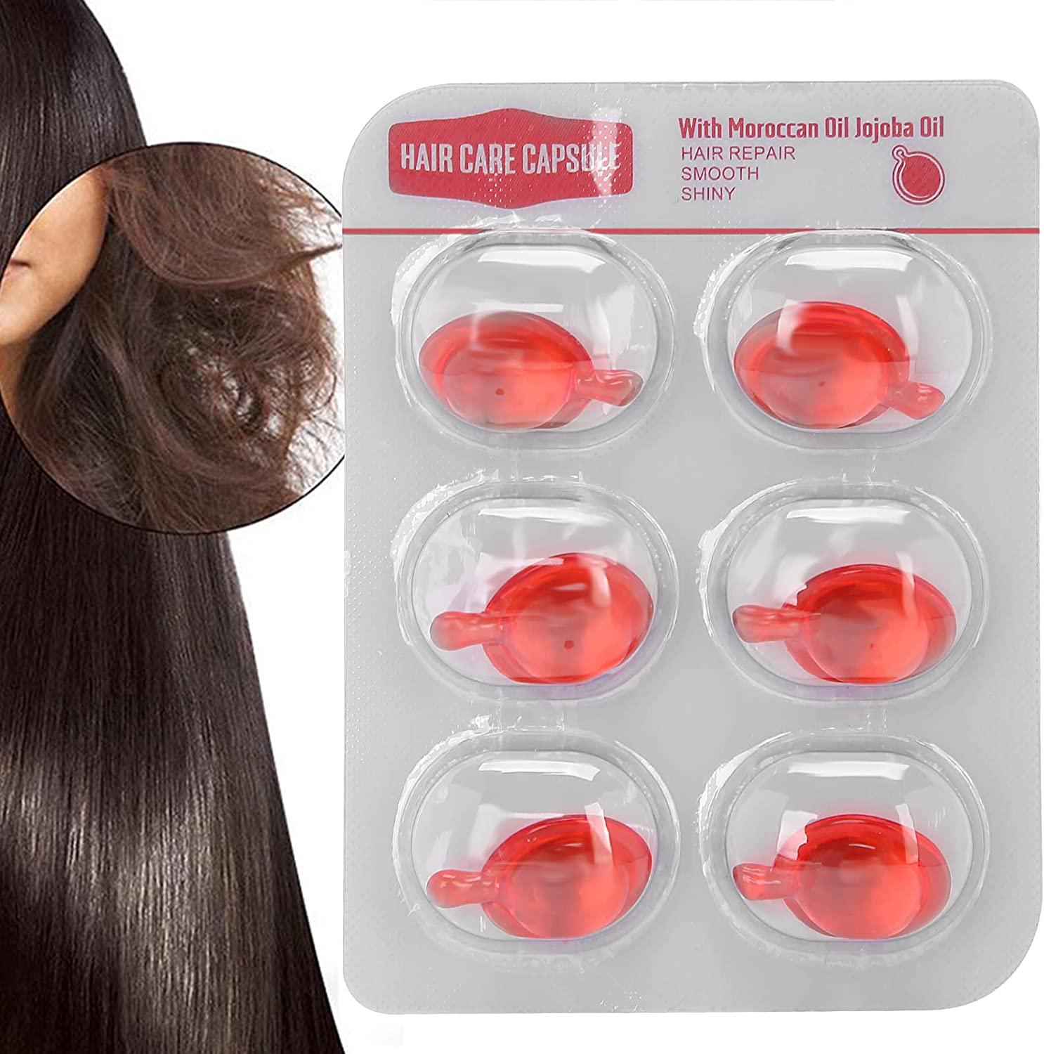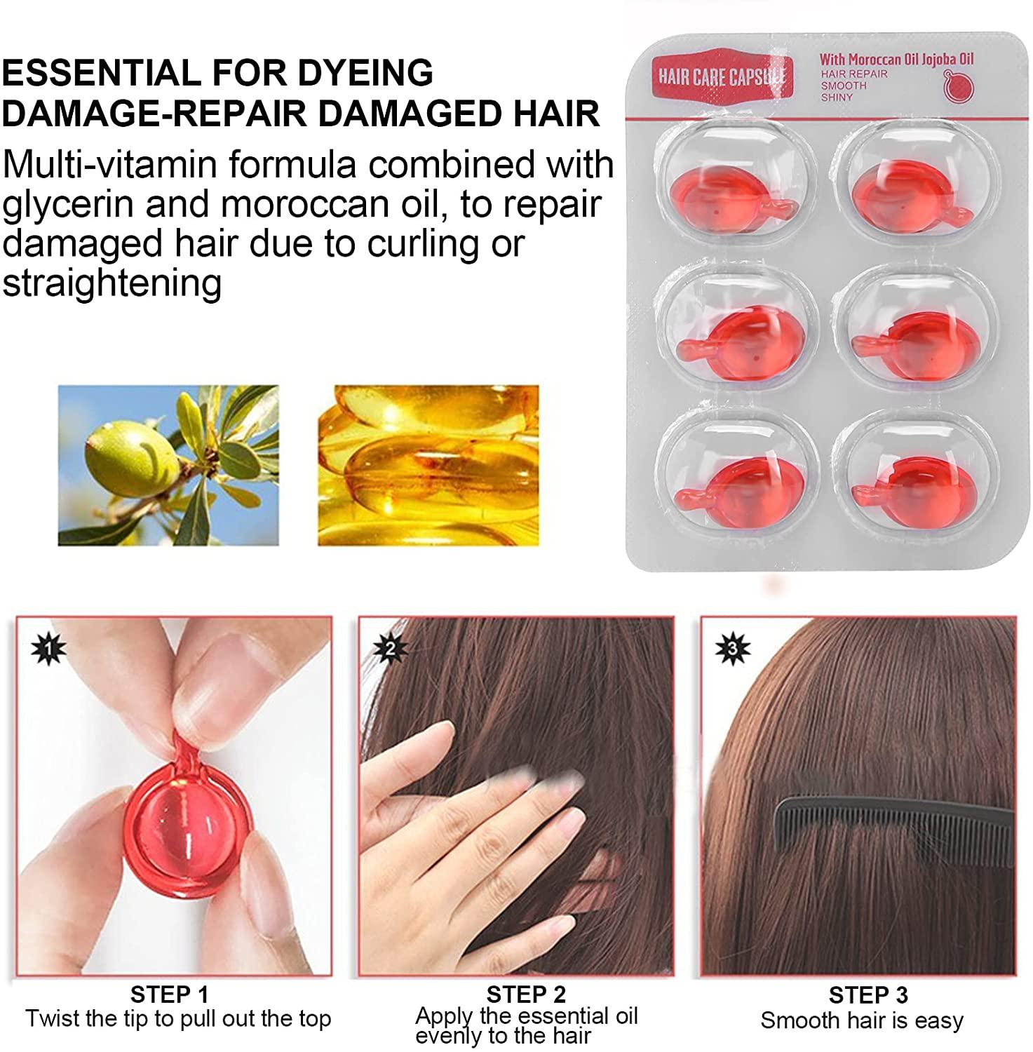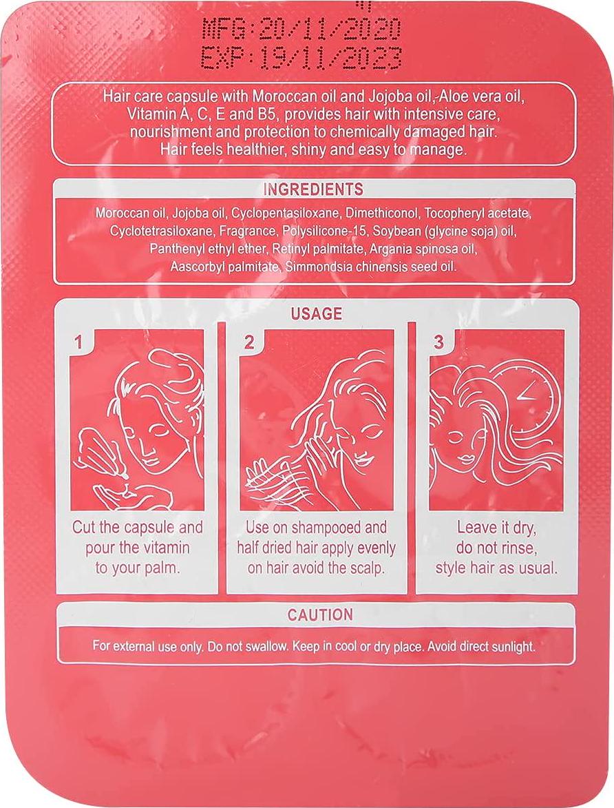 - The red capsule serum including Moroccan oil, jojoba oil, to nourish and repair brittle and rough hair, making the hair healthier and stronger.