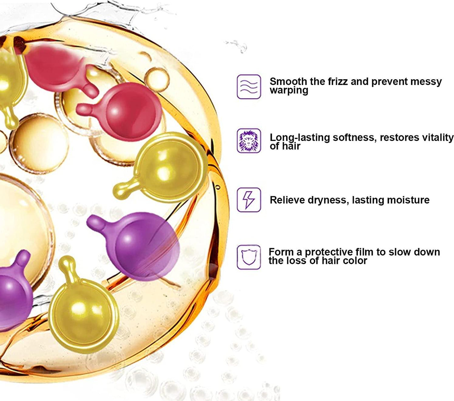 - The purple capsule serum contains Moroccan oil, sutiable for hair care after hair dyeing, nourish hair and make hair soft to touch.