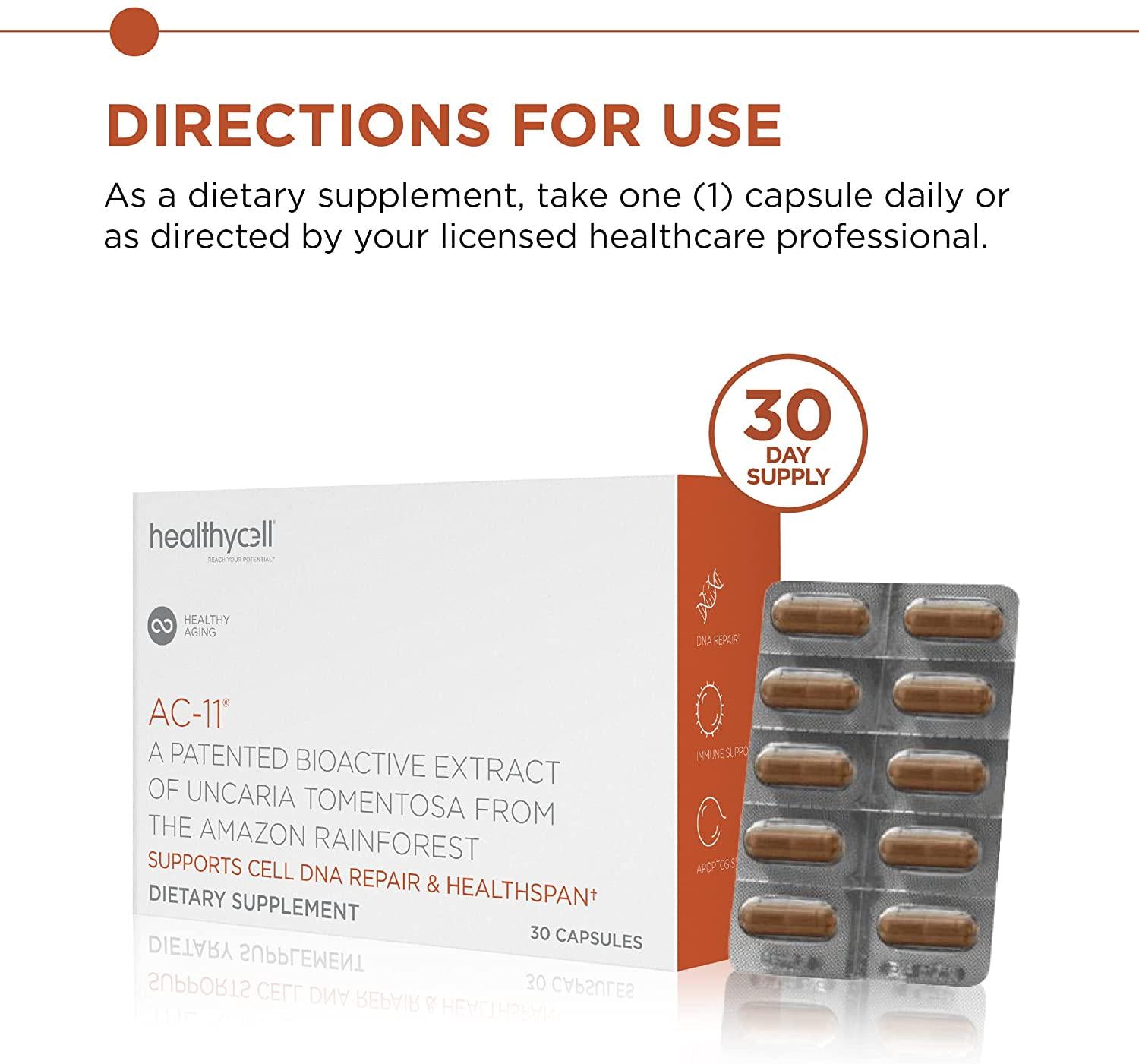 Healthycell AC-11 Supplement - DNA Repair Extract from Uncaria tomentosa Cat's Claw - Supplement for Anti Aging - Stem Cell Support - Immune Boosting - 350mg Natural Capsules (30 Pack Supply)