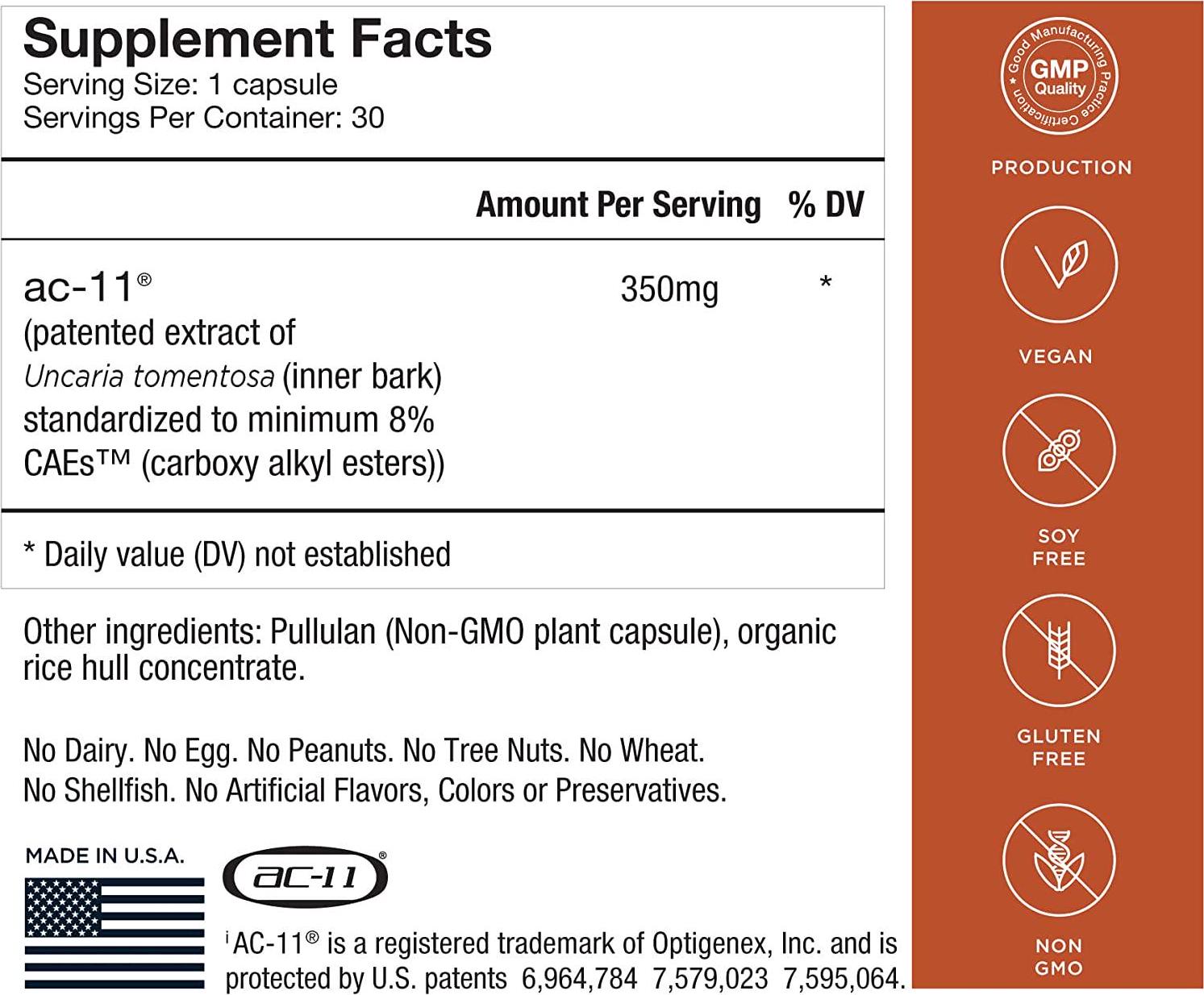 - FULL DOSAGE 350 MG: This ac11 supplement includes the effective dosage of 350mg of pure ac11 bioactive extract of Peruvian rainforest Uncaria tomentosa for therapeutic effect so you can achieve the proven cellular benefits.