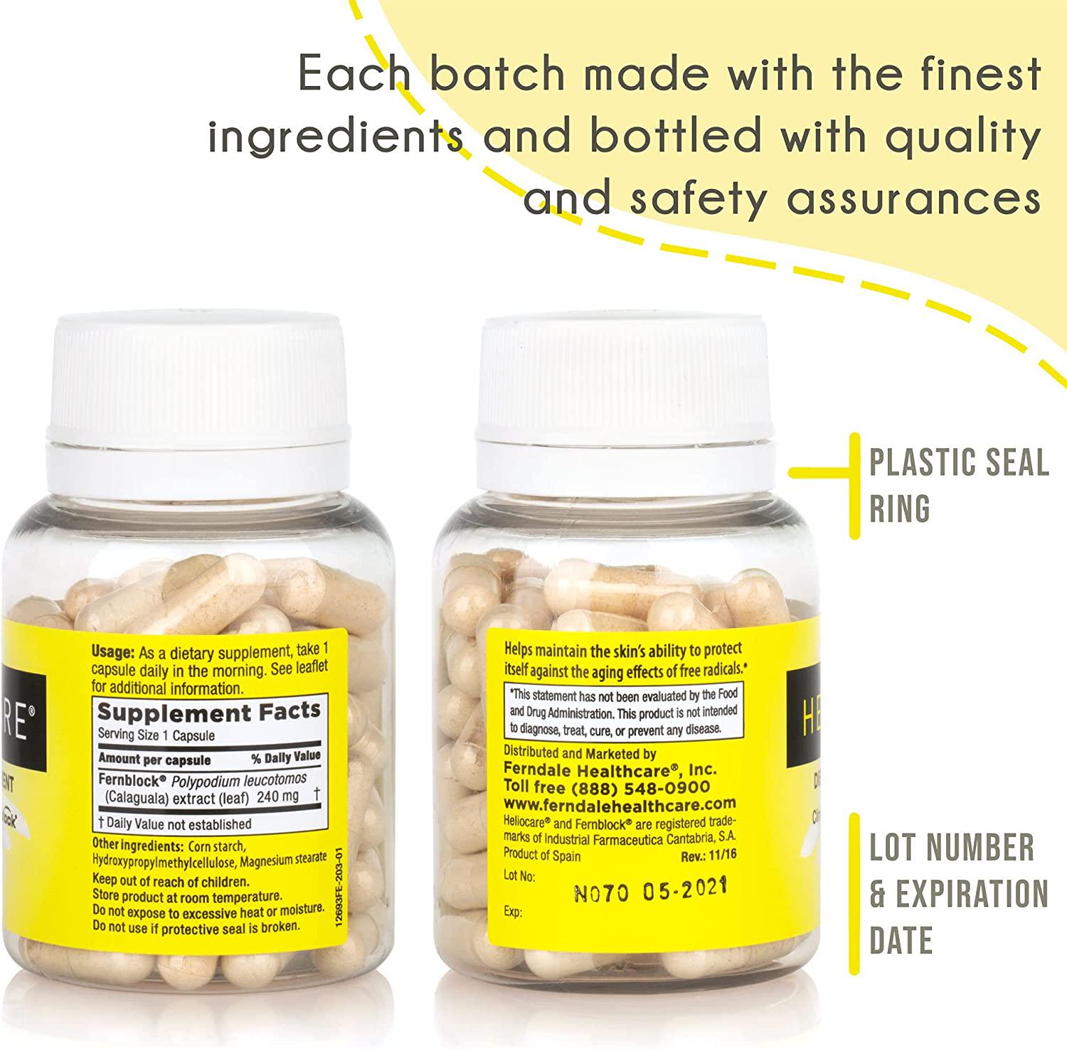 Heliocare Skin Care Dietary Supplement: 240mg Polypodium Leucotomos Extract Pills - All Natural, Antioxidant Rich Formula Derived from Nature with Fernblock and PLE Technology - 60 Veggie Capsules