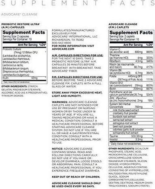 The AdvoCare Herbal Cleanse system can help rid your body of waste and prepare the body for optimal nutrient absorption with its unique blend of herbal ingredients.* Using a systematic approach, this 10-day system guides you through the daily steps for thorough internal cleansing and improved digestion.* Each Herbal Cleanse box includes these two key products: ProBiotic Restore capsules and Herbal Cleanse tablets. For the complete system, combine use of these two products with AdvoCare Fiber (also sold separately) for the duration of the 10 days. Although not specifically designed for weight management, some people who use Herbal Cleanse for the first time may experience a reduction in pounds and/or inches when they pair the system with a healthy, well-balanced diet and exercise.* * These statements have not been evaluated by the Food and Drug Administration. This product is not intended to diagnose, treat, cure or prevent any disease.