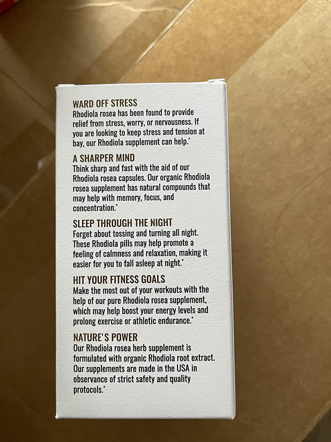 - Special Ingredients: Organic Rhodiola Root (Rhodiola Rosea)