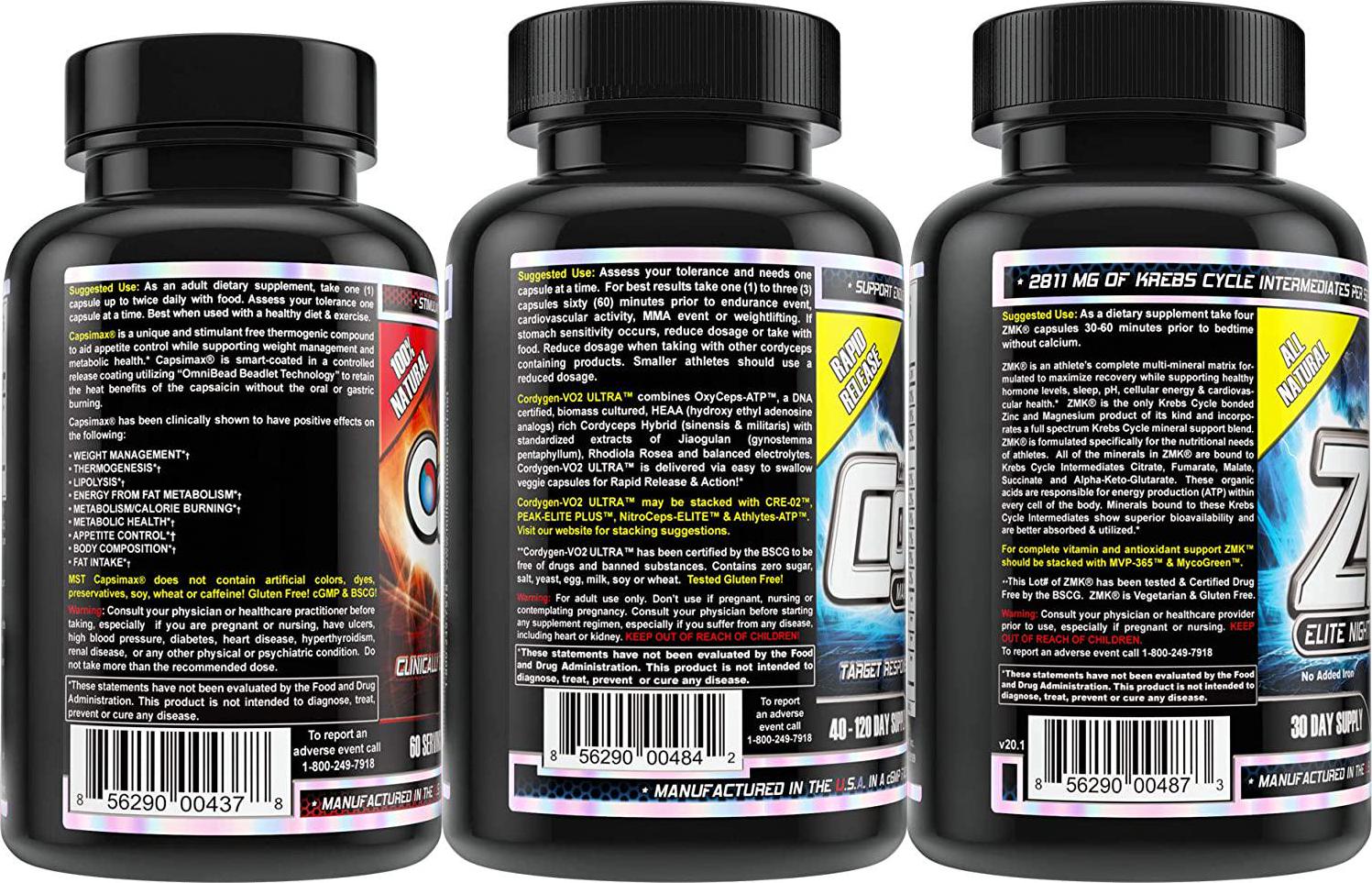 Home Workout Supplement Stack - Capsimax 100mg, 60 Servings clinically dosed Weight Management, ZMK Nighttime Recovery, Cordygen VO2 Ultra Pre Endurance from MST Millennium Sport Technologies