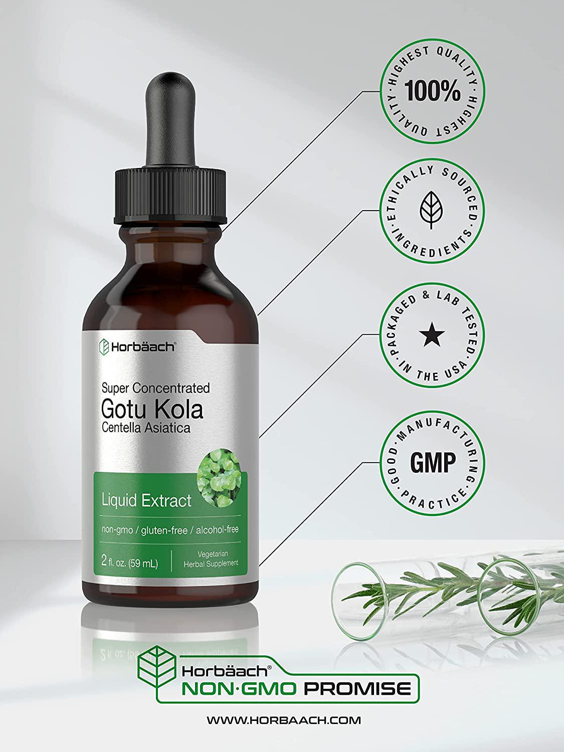 Horbaach Gotu Kola Extract | 2 Oz | Alcohol Free | Super Concentrated | Vegetarian, Non-GMO, Gluten Free Liquid Herb Supplement