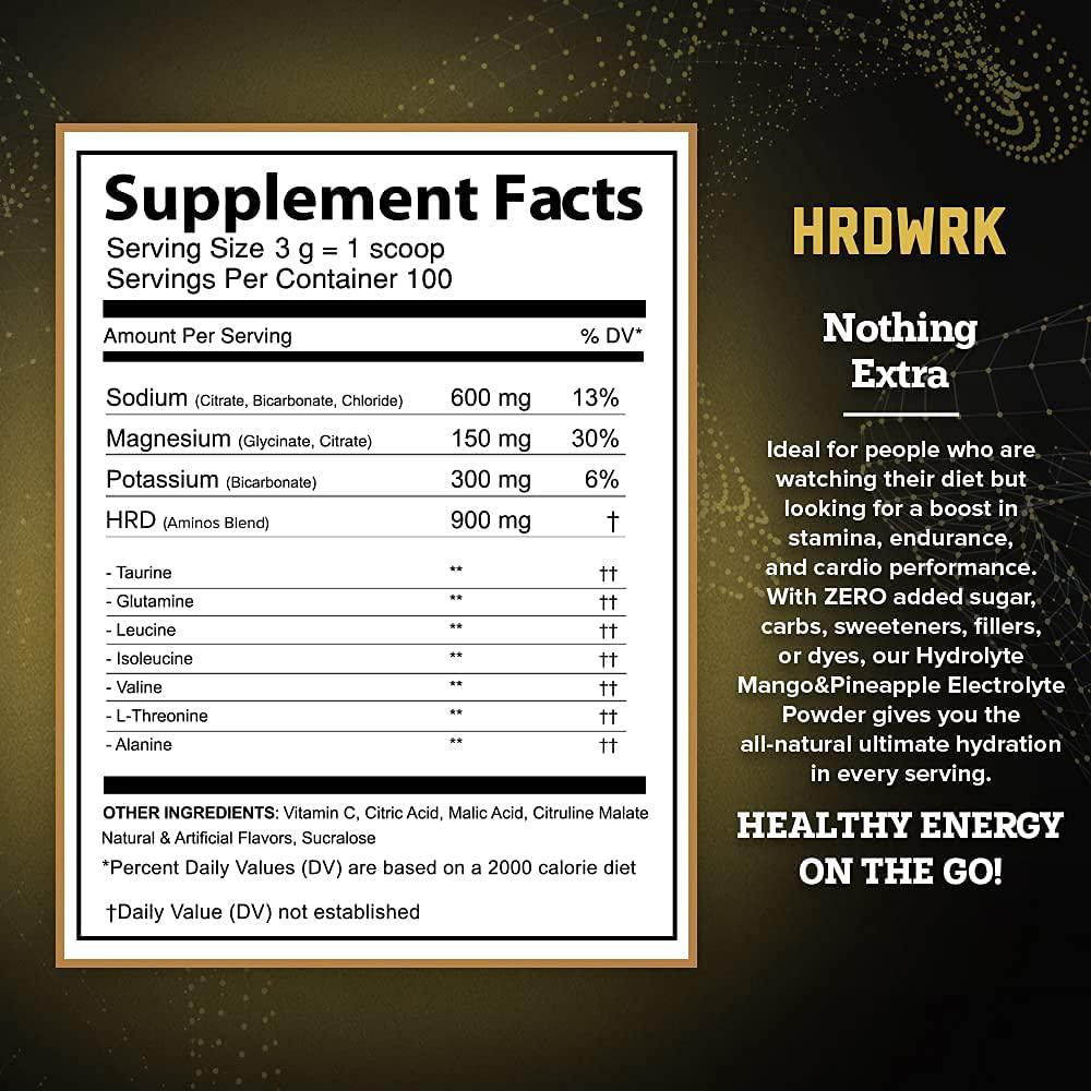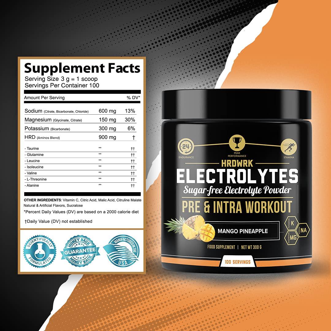 HRDWRK Electrolytes Powder | Carb and Sugar-Free Electrolytes 100 Servings Hydration Supplement | Electrolytes Supplement with Magnesium, Potassium and Sodium | Keto-Friendly Replenishment Drink