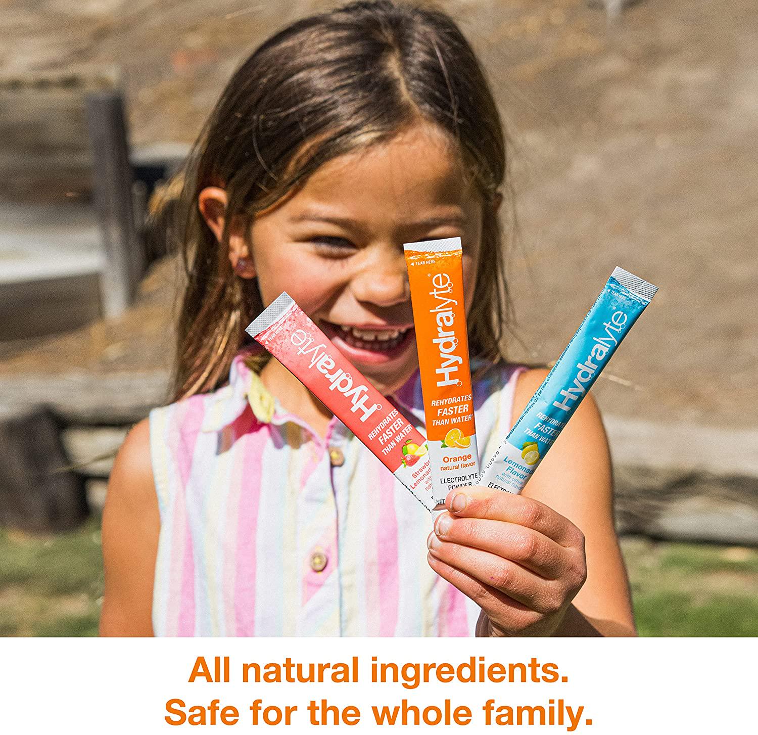 Hydralyte Electrolyte Hydration Powder Packets | Lightly Sparkling | Powder Drink Mix for Workout, Cold & Flu, & Late Night Recovery | All Natural Strawberry Lemonade, Orange & Lemonade, 30 ct