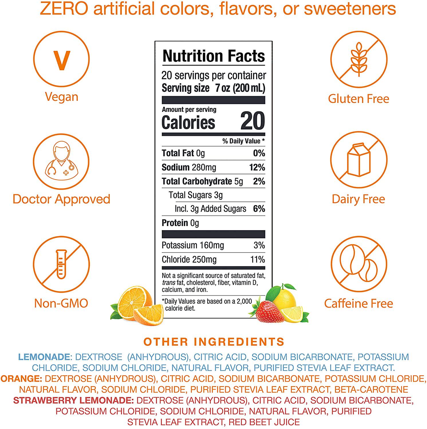 - Flavor: Strawberry Lemonade, Orange and Lemonade