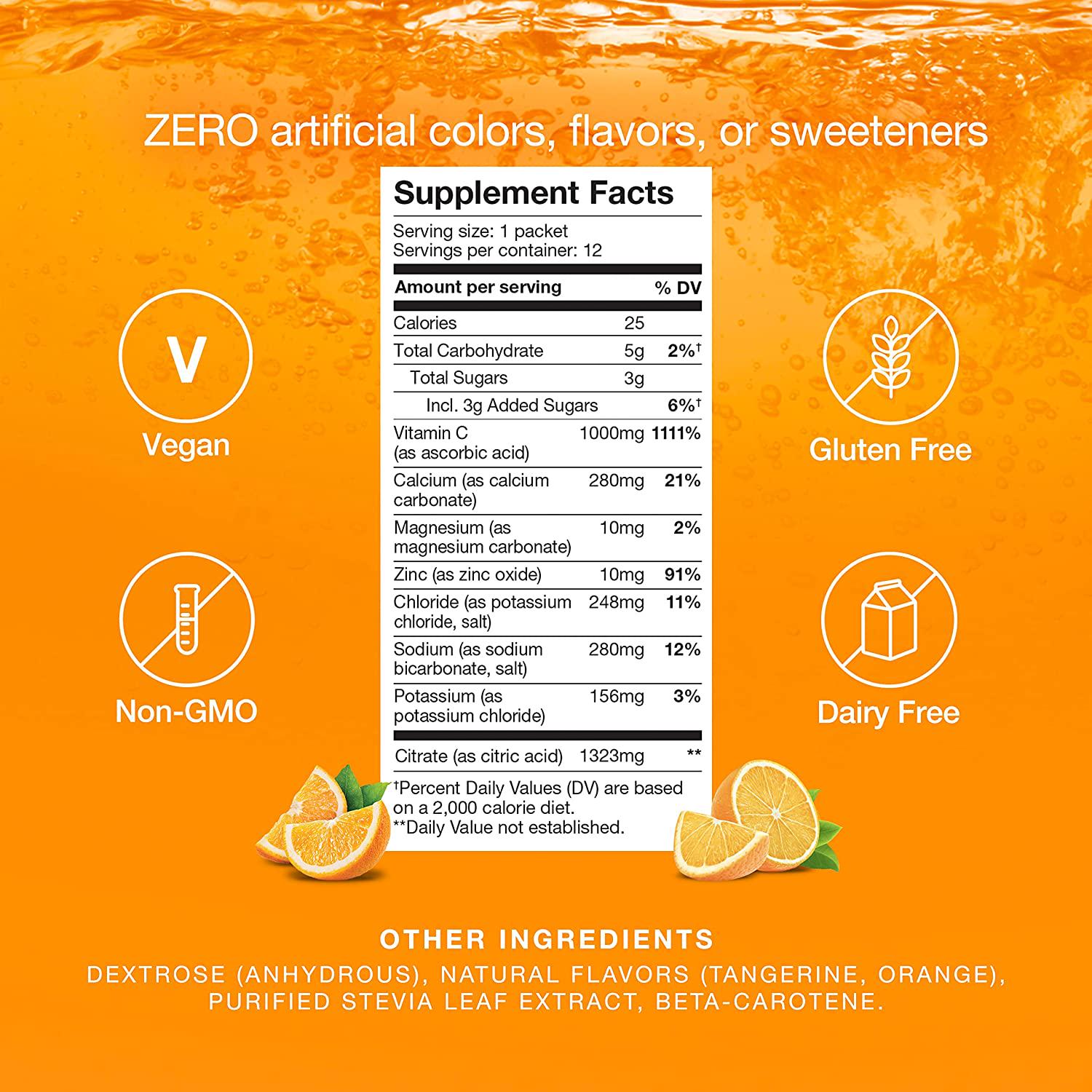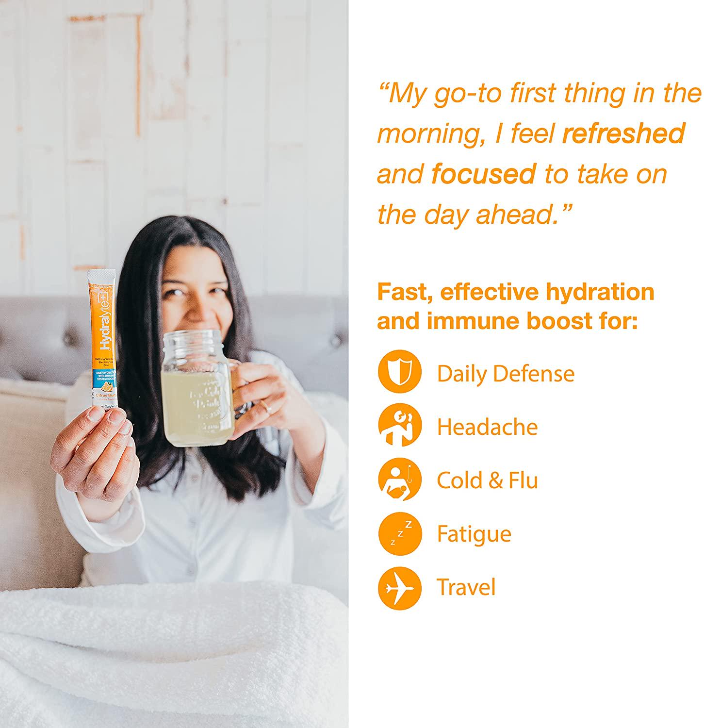 all natural, citrus electrolyte powder packets, hydralyte immunity, immune support, usa, vitamin c, zinc