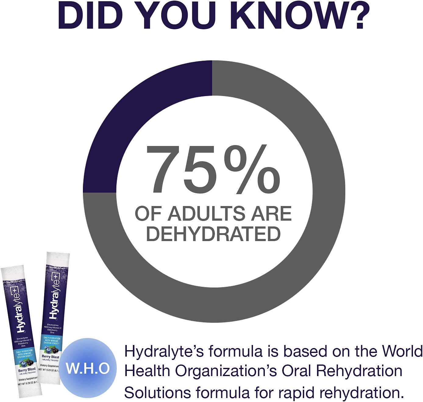 - RAPID REHYDRATION: Through the right ratio of glucose and electrolytes our scientifically formulated hydration packets provide 3 times the amount of electrolyte and water absorption as water alone! Just mix 1 pack of Hydralyte into 8oz of water.