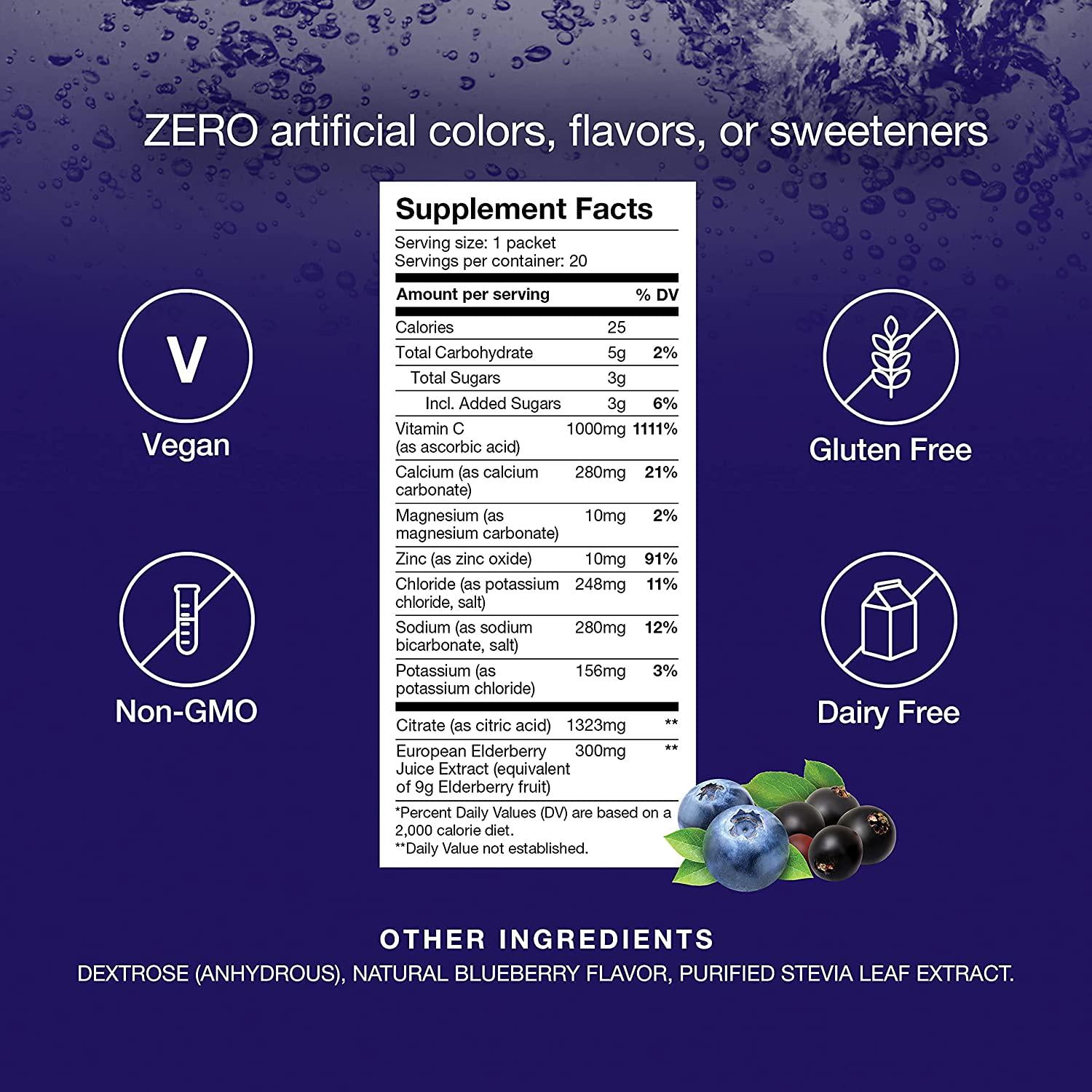elderberry, electrolyte powder packets, hydralyte immunity, hydration, immune support, usa, vitamin c