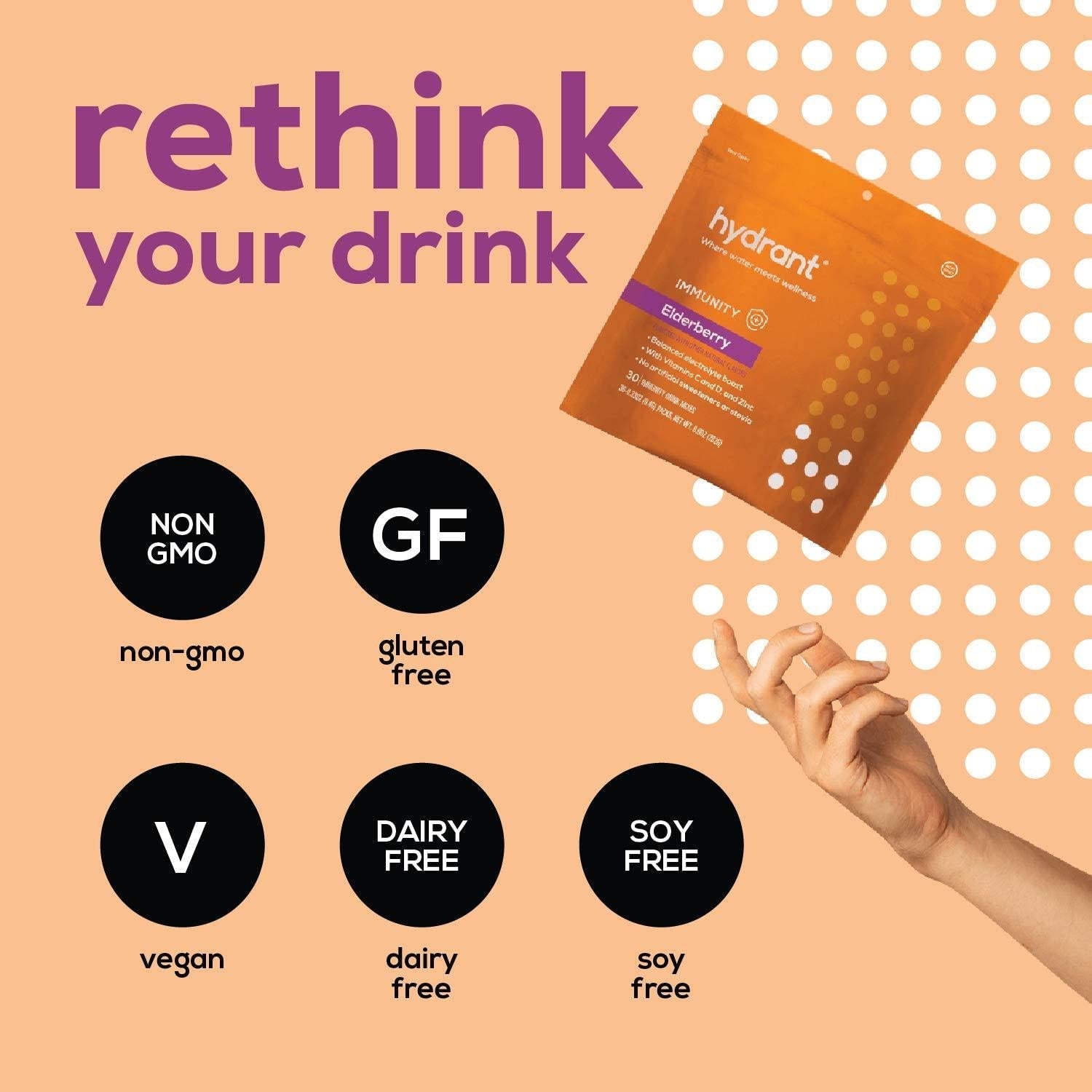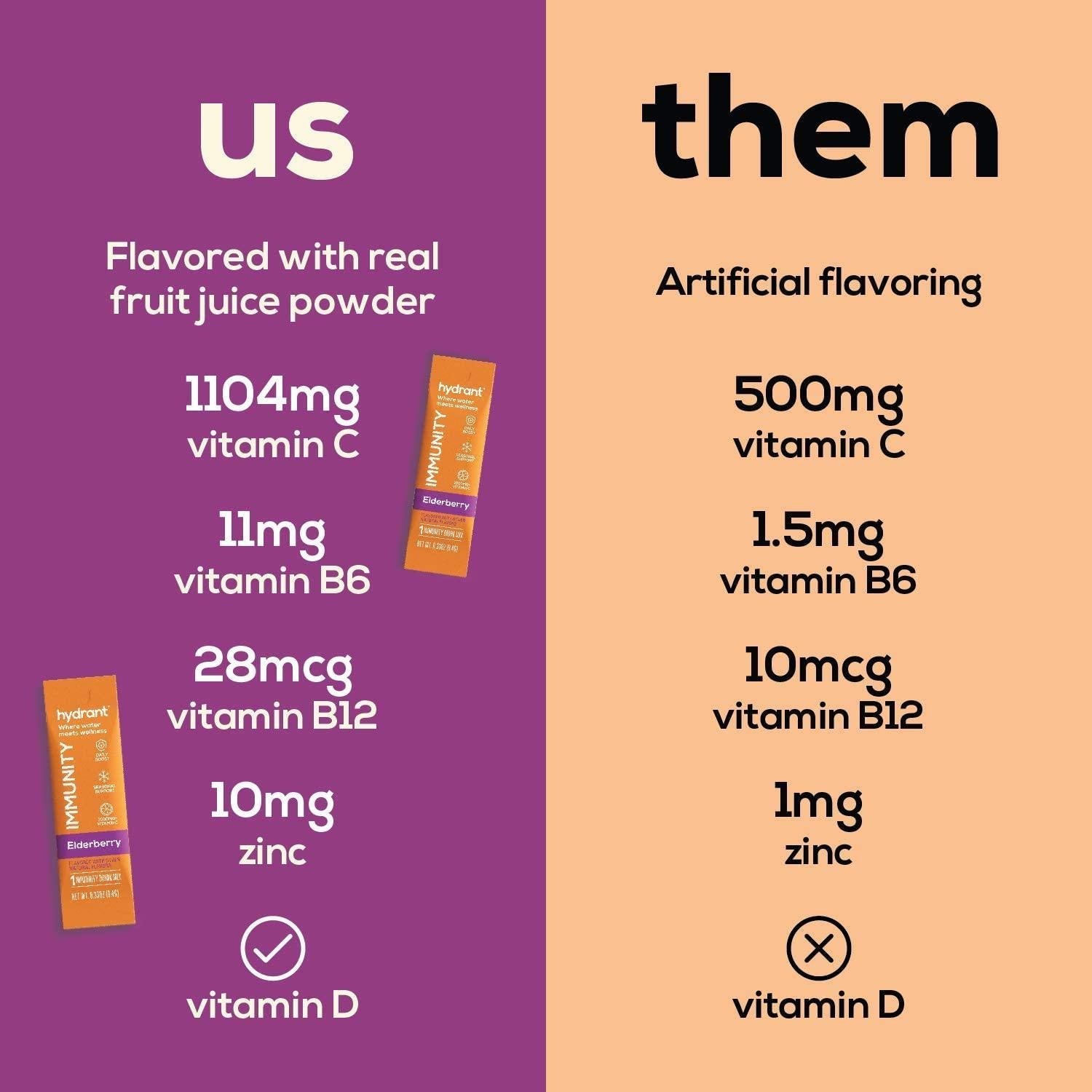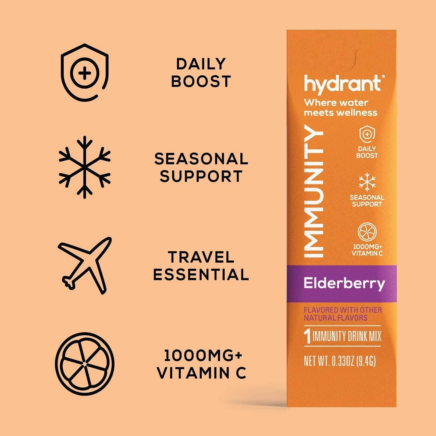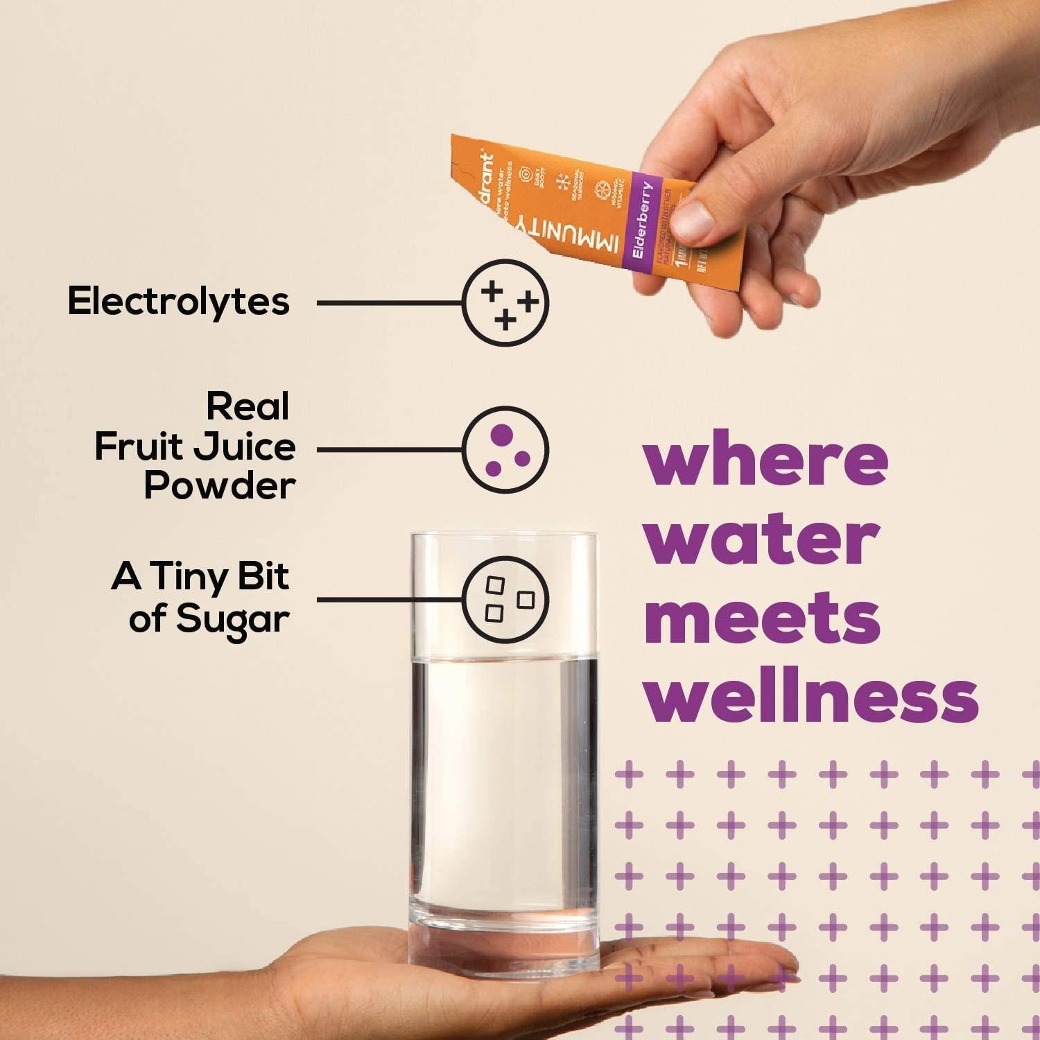 Hydrant Immunity Vitamins Electrolyte Powder - Supplement with Vitamin C, B12, B6, Zinc - Immune, Hydration, and Energy Support Hydration Powder Stick Packets (Elderberry, 30 Count)