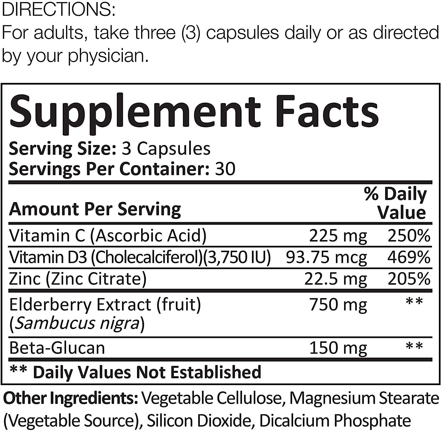 • POWERFUL IMMUNE SYSTEM VITAMINS FOR ADULTS: Make sure you have all the immune system vitamins you need with our strong blend of vitamin C and zinc, vitamin D, sambucus elderberry and beta glucan.