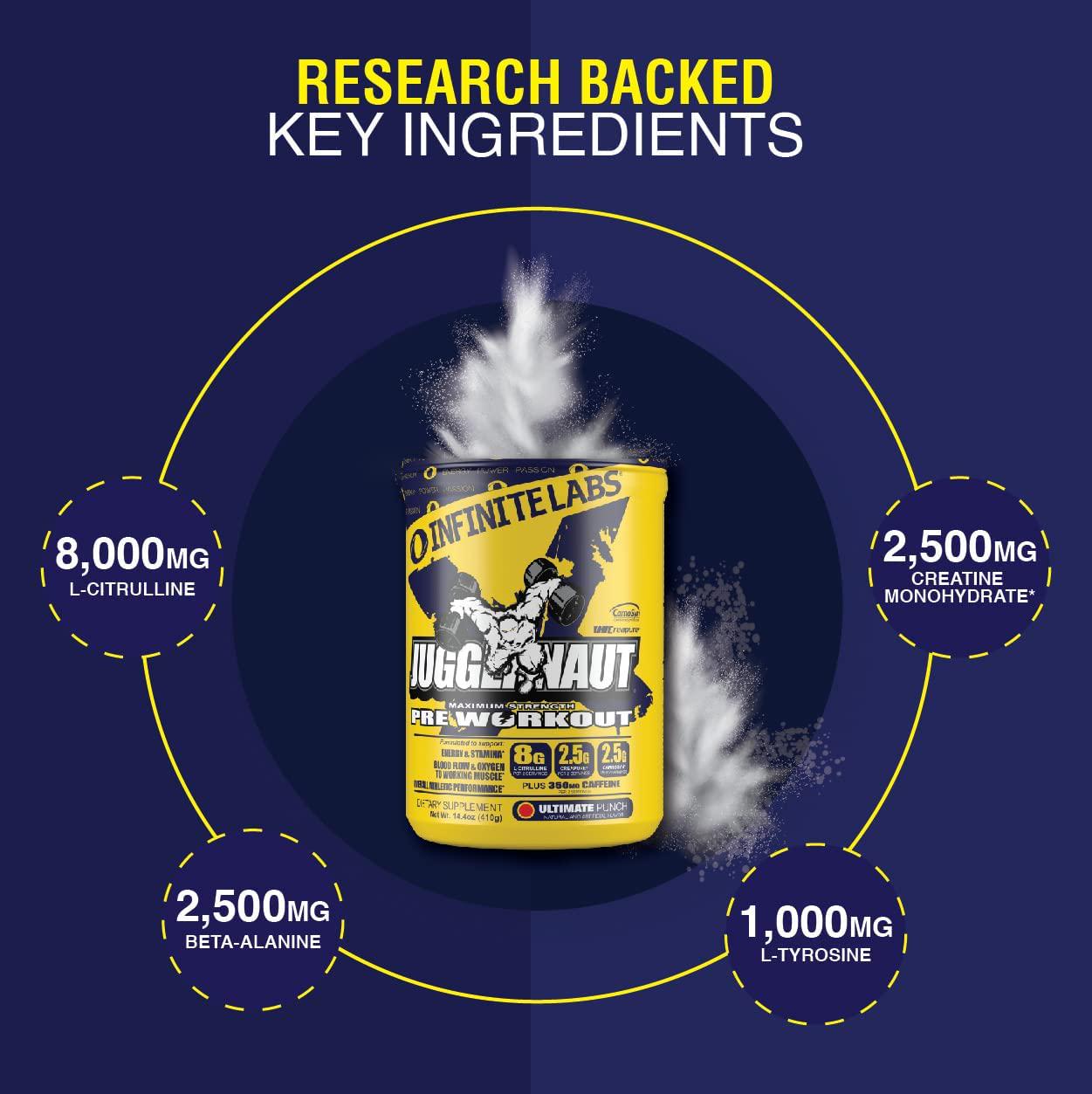 Infinite Labs Juggernaut X Ultimate Punch Pre Workout Supplement with Citrulline, Creatine, Beta Alanine, 14.4 oz, 42 Servings, Pre Work Out Supplements for Women and Men