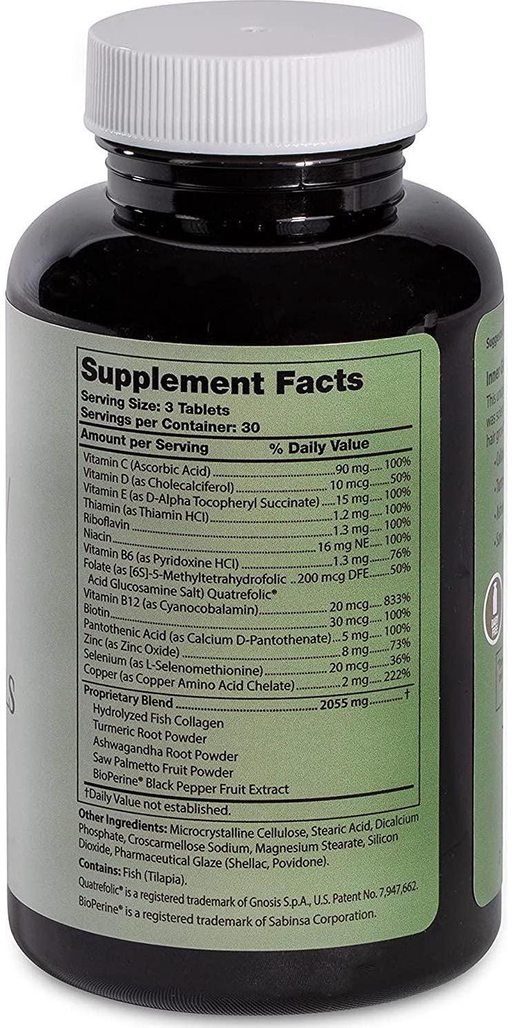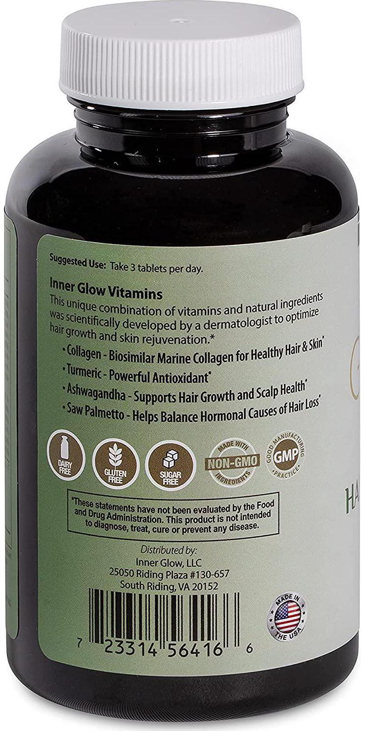 This unique combination of vitamins and natural ingredients was scientifically developed by a dermatologist to optimize hair growth and skin rejuvenation. Biosimilar Marine Collagen for healthy hair & skin. Tumeric is a powerful antioxidant. Ashwagandha supports hair growth and scalp health. Saw Palmetto helps balance hormonal causes of hair loss.