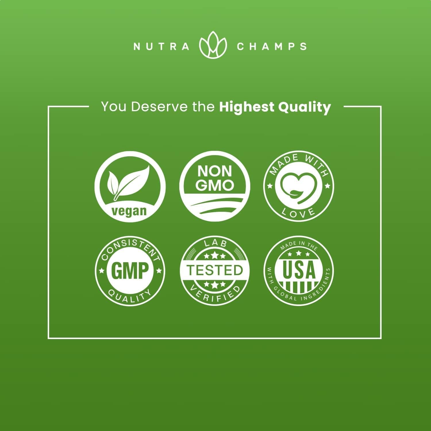 - cGMP USA MANUFACTURING - All NutraChamps supplements are manufactured in a state-of-the-art cGMP facility, and lab tested to guarantee that you receive the purest, safest and highest quality products on the market.