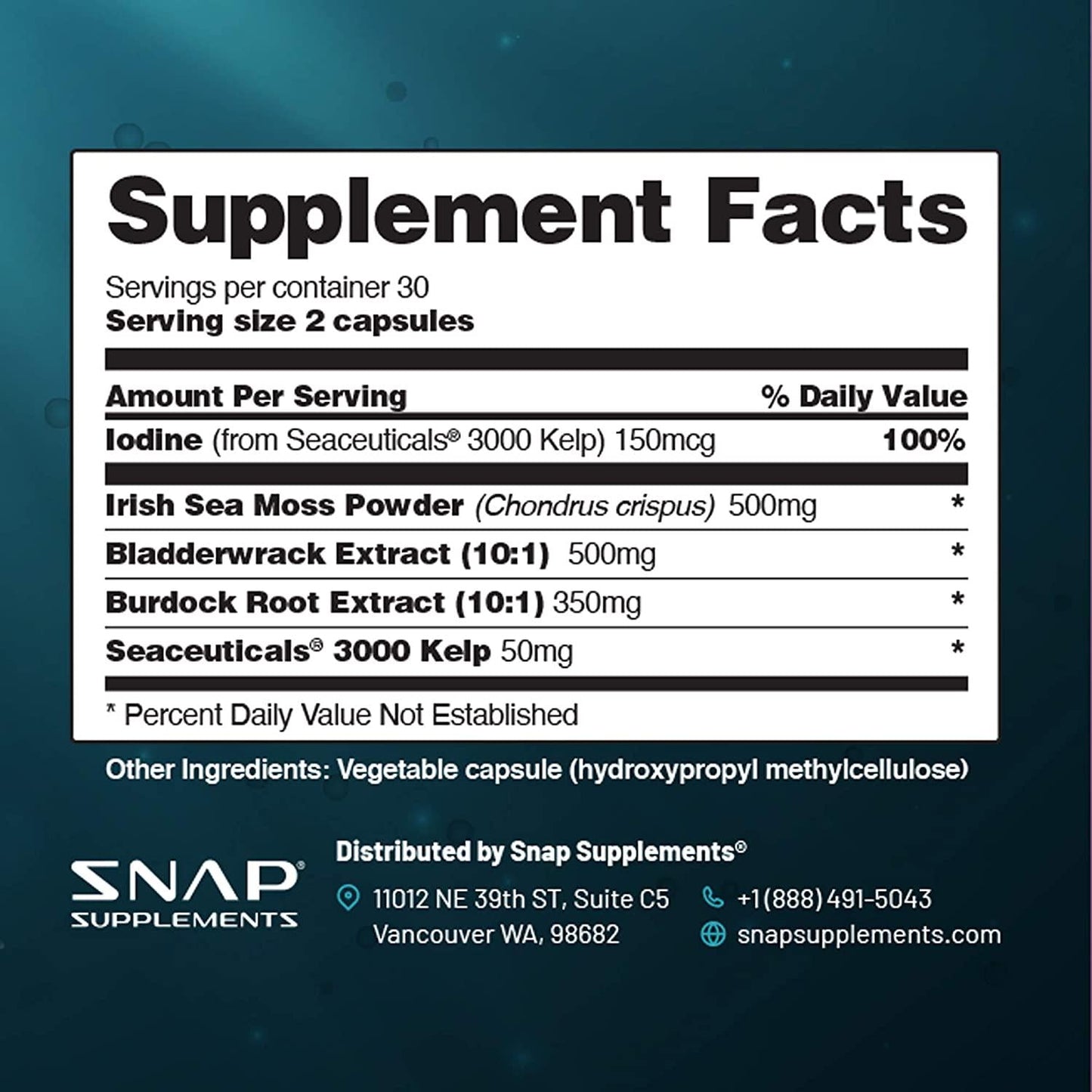 bladderwrack, burdock root, energy support, iodine, irish sea moss capsules, seamoss supplement