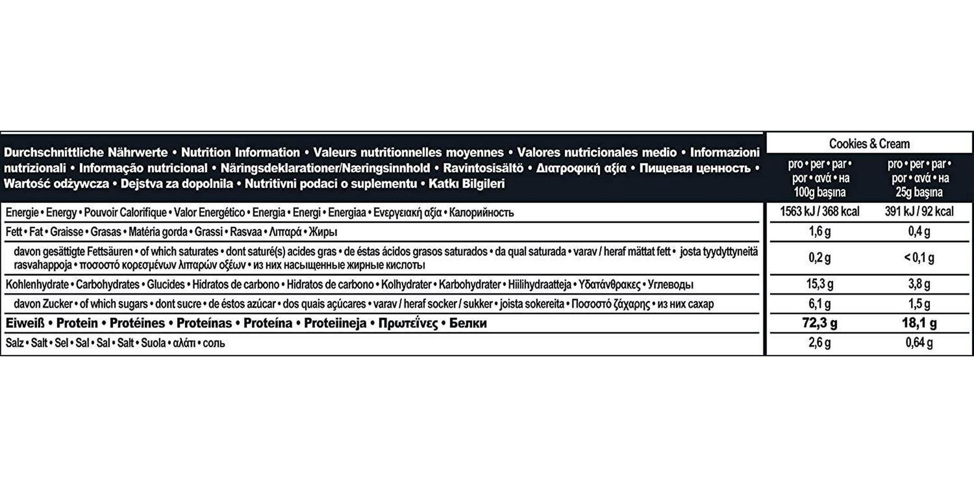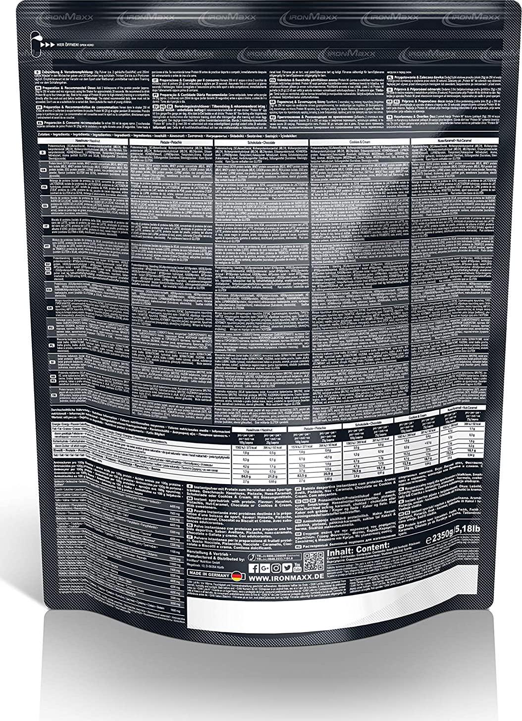 IronMaxx Protein 90 Cookies and Cream powder is 9-component protein mixture. Rich in essential amino acids (BCAAs & L-Glutamine). Ideal in the muscle building phase. The advantages of protein drinks mixed with water are varied and of great importance, especially for bodybuilders and body conscious people who do not want to leave anything to chance. By mixing protein powder with water - instead of milk are lower in calories and fats added, that are normally present in the milk. Especially with protein powders, which are usually consumed immediately after exercise or physical activity, a preparation with water is very useful, since the required muscle nutrients are supplied in a very short time. The high level of protein helps build lean muscle mass and to get over a long period of time. More and more athletes rely after training exclusively on pure whey, forgotten, however, the effect of mutual appreciation of different protein sources. A real alternative to conventional whey products is the new 90 protein, the excellent product dissolves in water and also tastes delicious. The animal and vegetable protein components complement each other perfectly. The protein mixture of 9 different sources proves itself by the rapid usability. Protein 90 is thus an absolute all-rounder and an affordable alternative to conventional whey preparations! This newly developed designer mix with just 3% carbohydrate content and up to 90% (dry weight) Protein content is extremely soluble in water and offers a special creaminess. Similar to the 100% Whey Protein by IronMaxx convinces protein 90 with excellent taste and provides true variety on the menu. Contain Ingredients: Protein Blend: Soy protein isolate, Whey Protein Concentrate, Whey Protein Isolate, Whey Protein Hydrolyzate, Milk Protein, Pea Protein Isolate, Egg White Powder, Lupine Protein Powder, Rice Protein; De-Oiled Cocoa Powder Strong Aroma, Sweeteners: Acesulfame-K, Sodium Cyclamate, Sodium Saccharine, Sucralose. May contain traces of wheat. Directions for use: Take up to 4 servings a day. Recommended consumption is before exercise or competition, directly after training and before sleep.