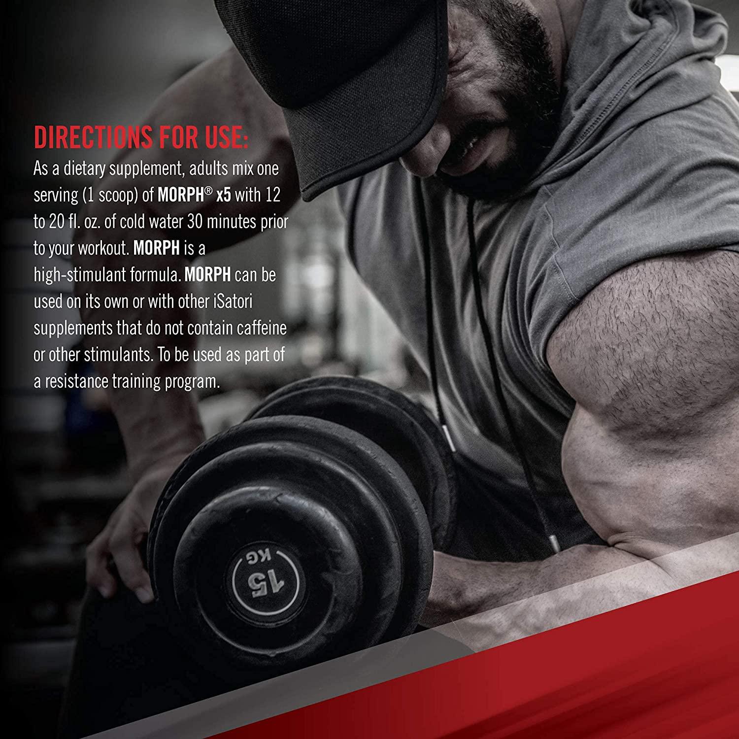 INTENSE 7-PRE-WORKOUT + BCAAs: You work hard in the gym... so you want a pre-workout that matches your intensity. MORPH XTREME is a full-blown, high intensity complete formula designed to help you achieve personal bests day in and day out. To maximize every set and rep, you need MORPH Xtreme at the forefront of your supplement program. 7-IN-1 COMPLET FORMULA FOR MAXIMUM IMPACT: The perfect workout is more that just jittery energy. It's about building muscle and strength, improving recovery and experiencing a skin-splitting pump amongst other critical factors. The complete MORPH Xtreme is designed to deliver on seven areas that can make you work out better than you ever thought possible. 1) ENERGY 2) FOCUS 3) PUMP 4) STRENGTH 5) RECOVERY 6) MUSCLE 7) ENDURANCE ADDED POWER OF BCAAs: Most of us know that when you work out, you damage your muscle fibers and they need nutrients to trigger recovery and to help with the actual process. MORPH Xtreme includes 4 grams of Branched Chain Amino Acids (BCAAs) in a 2:1:1 ration to not only assist in preventing muscle breakdown but triggering recovery. This is the icing on the cake for a complete work out! FLAVOR, FLAVOR, FLAVOR: After literally months of refining the flavor profiles for MORPH Xtreme, iSatori has delivered arguably the best flavor profiles in the pre-workout category if not the industry! Gone are the days of medicinal tasting, chunky pre-workouts with the introduction of Morph Xtreme SCIENCE + WORK = RESULTS - iSatori sports nutrition supplements can help support you in reaching your fitness goals. When you work hard at achieving your optimal body performance and endurance, you need to protect your investment. By combining nutritional supplements with your workouts, you leverage our science to maximize higher energy levels and reduce your recovery time.