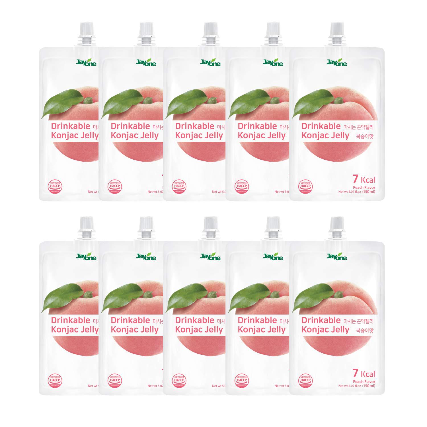 Jayone Drinkable Konjac Jelly (10 Packs of 150ml) - Healthy and Natural Weight Loss Diet Supplement Foods, 0 Gram Sugar, Low Calorie, Only 7 kcal Each Packets (Peach)