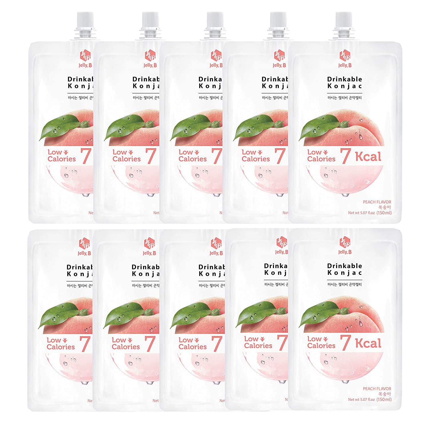 Jelly.B Drinkable Konjac Jelly (10 Packs of 150ml) - Healthy and Natural Weight Loss Diet Supplement Foods, 0 Gram Sugar, Low Calorie, Only 6 kcal Each Packets, (Peach)