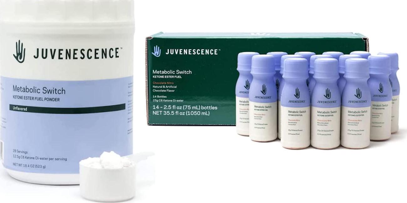 Juvenescence Metabolic Switch Ketone Drink and Powder - Switch on Ketosis - BHB - 18.4 oz. Powder (28 Servings) + 14 Count Drinks (2.5 oz Each).