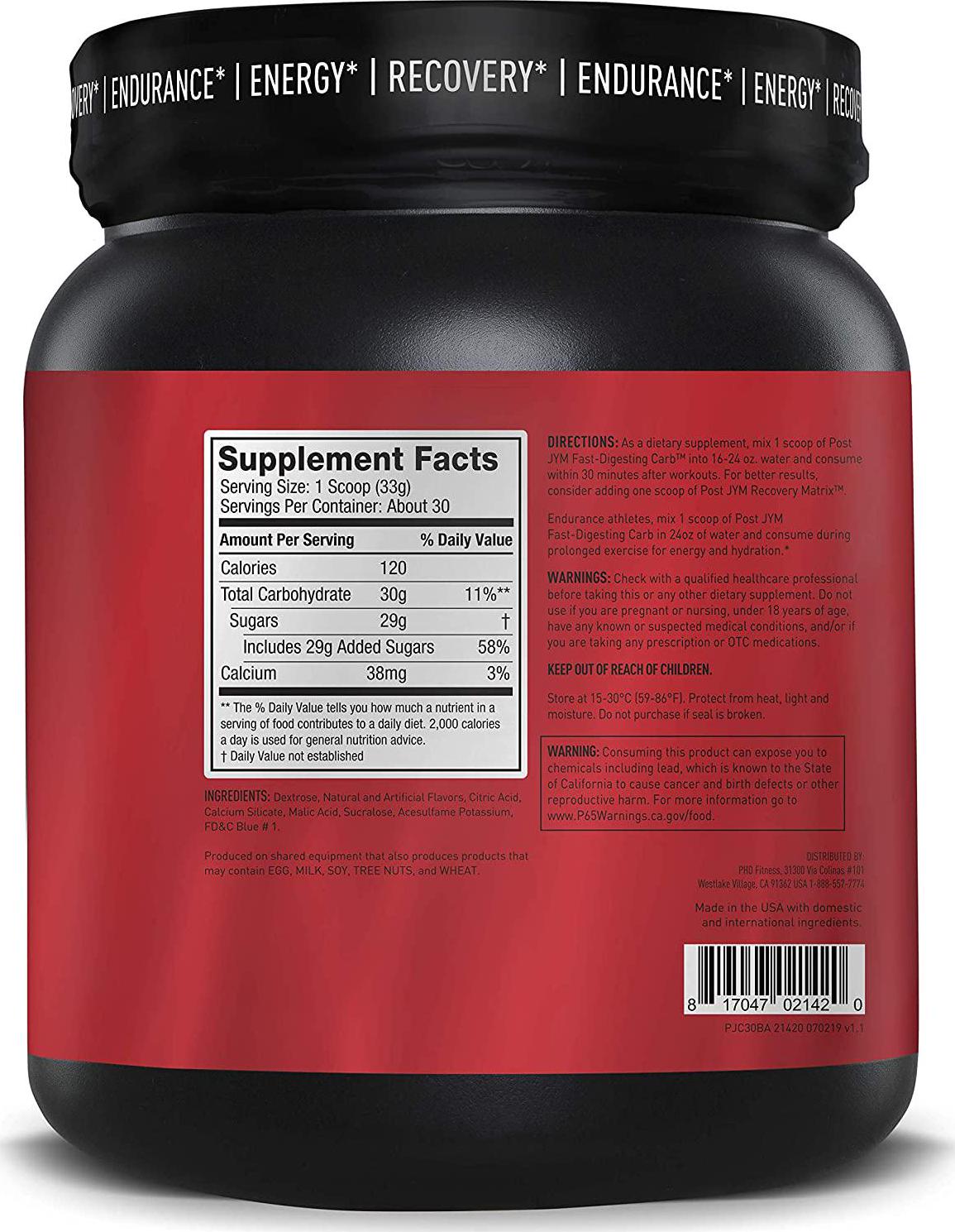 JYM Supplement Science Post JYM Fast-Digesting Carb - Post-Workout, 30 Servings, Blue Arctic Freeze, 2.2 Pound
