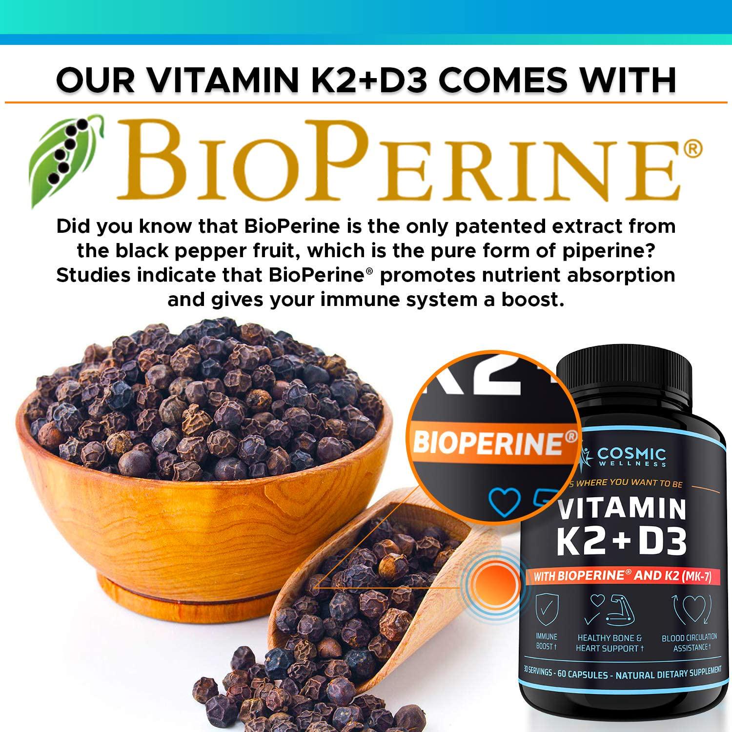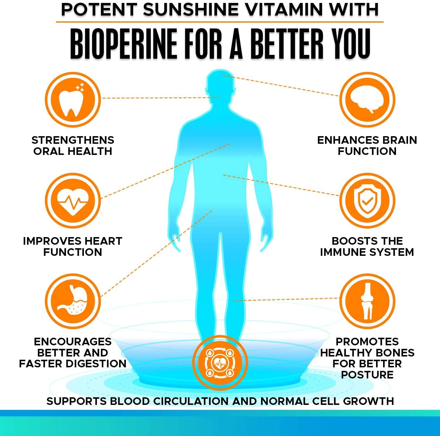 - SUPERIOR ABSORPTION RATE: These capsules may be small and easy to swallow, but they pack a punch. BioPerine enhances the absorption and bioavailability of the supplement, meaning it acts quickly for maximum benefits - but with less or no adverse effects. Enjoy the benefits of Vitamin D K, Calcium, and BioPerine with this full-packed essential supplement!