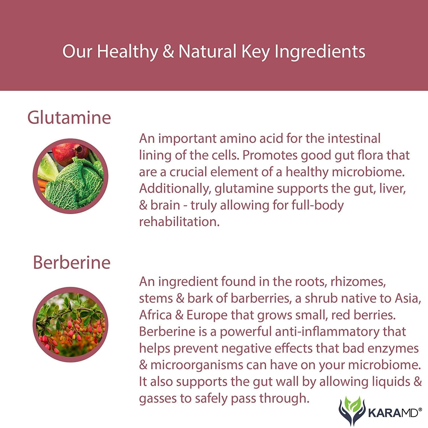 - POWERFUL NATURAL INGREDIENTS: Glutamine is an essential building block for proteins that are crucial to vital organs, intestinal and immune system health. Berberine in this gut restore supplement is a potent natural anti-inflammatory that works with your body to maintain a healthy microbiome.