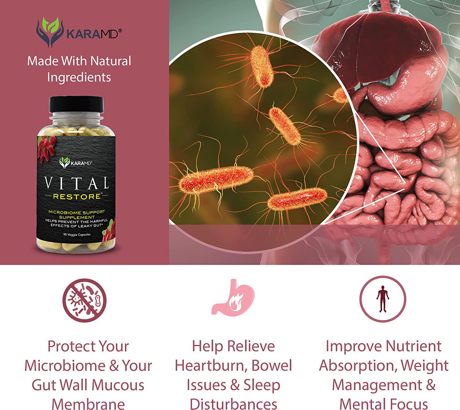 - WE GUARANTEE THAT YOU WILL LOVE IT: Your purchase of KaraMD Vital Restore leaky gut repair and natural gut health supplement is fully protected by an unconditional 90-day refund guarantee because we truly care about your customer experience.